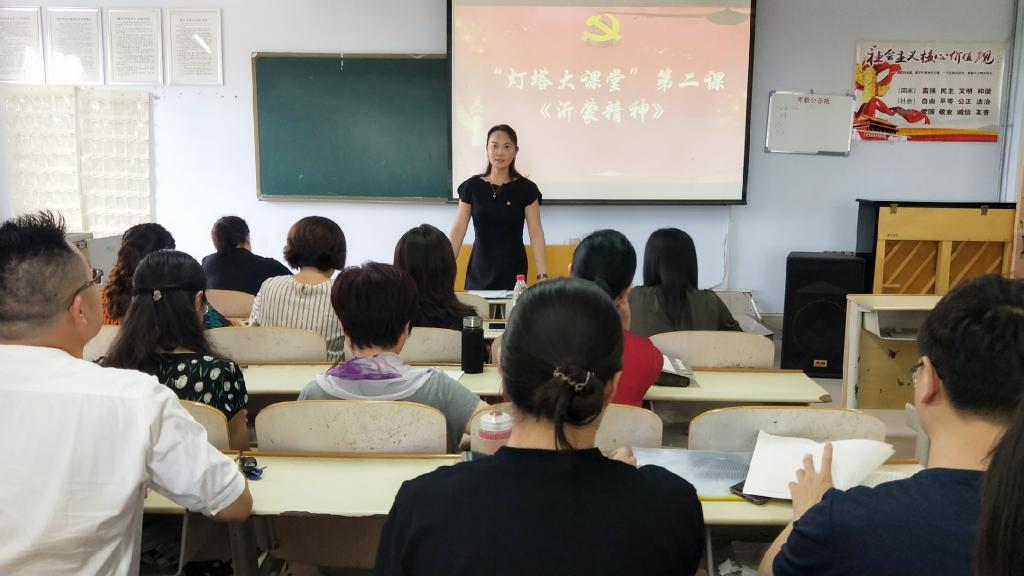 8月27日下午,久久久久久九九99精品大党总支组织全体师生党员,集中观看灯塔大课堂第二课——《沂蒙精神》。