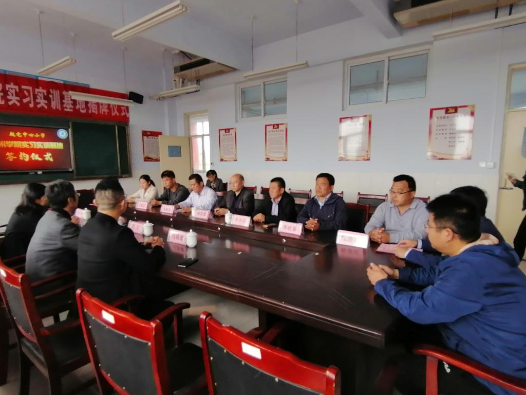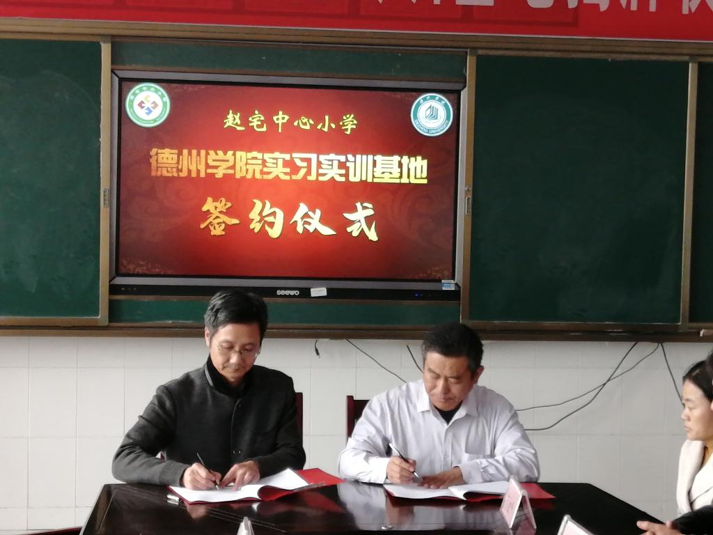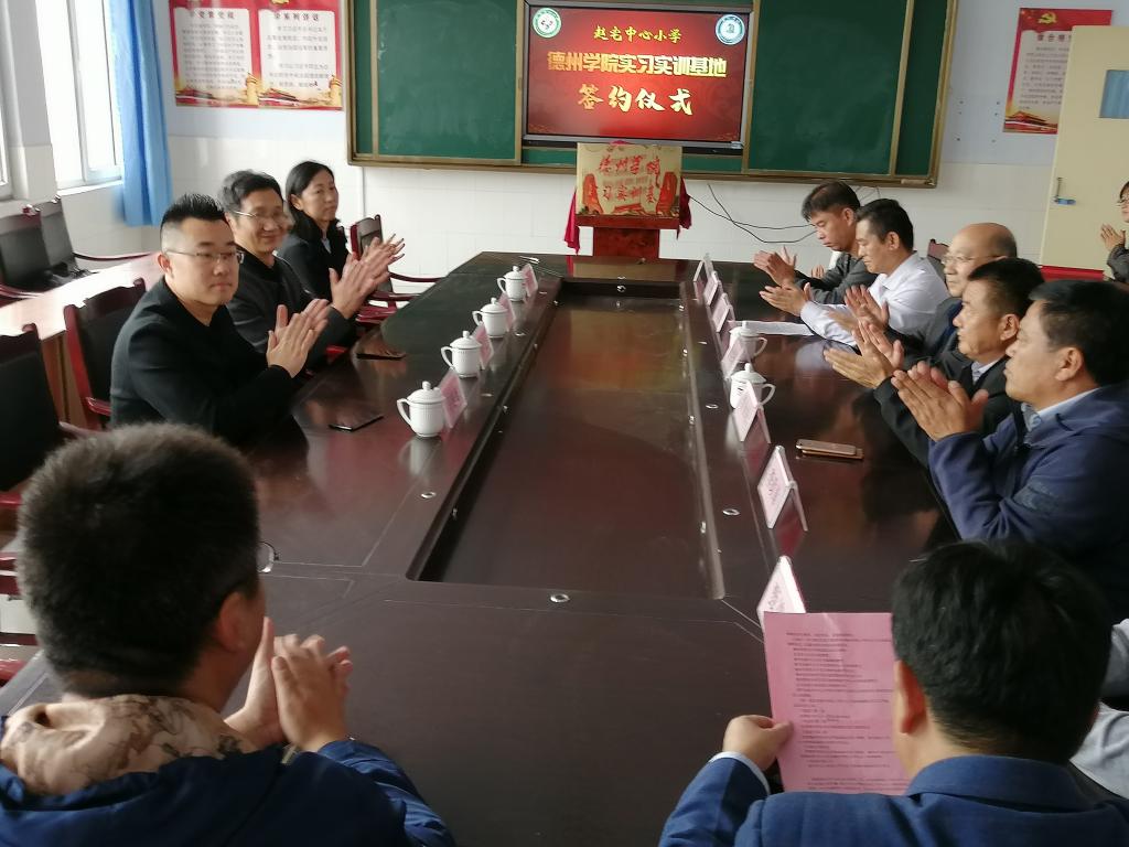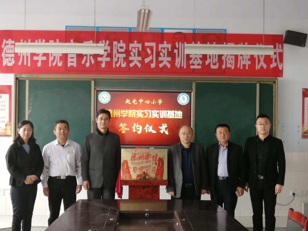 10月24日,久久久久久九九99精品大赴赵宅中心小学举行“德州学院实习实训基地”挂牌仪式。久久久久久九九99精品大副院长段文及赵宅中心小学校长张振强等领导教师参加活动。