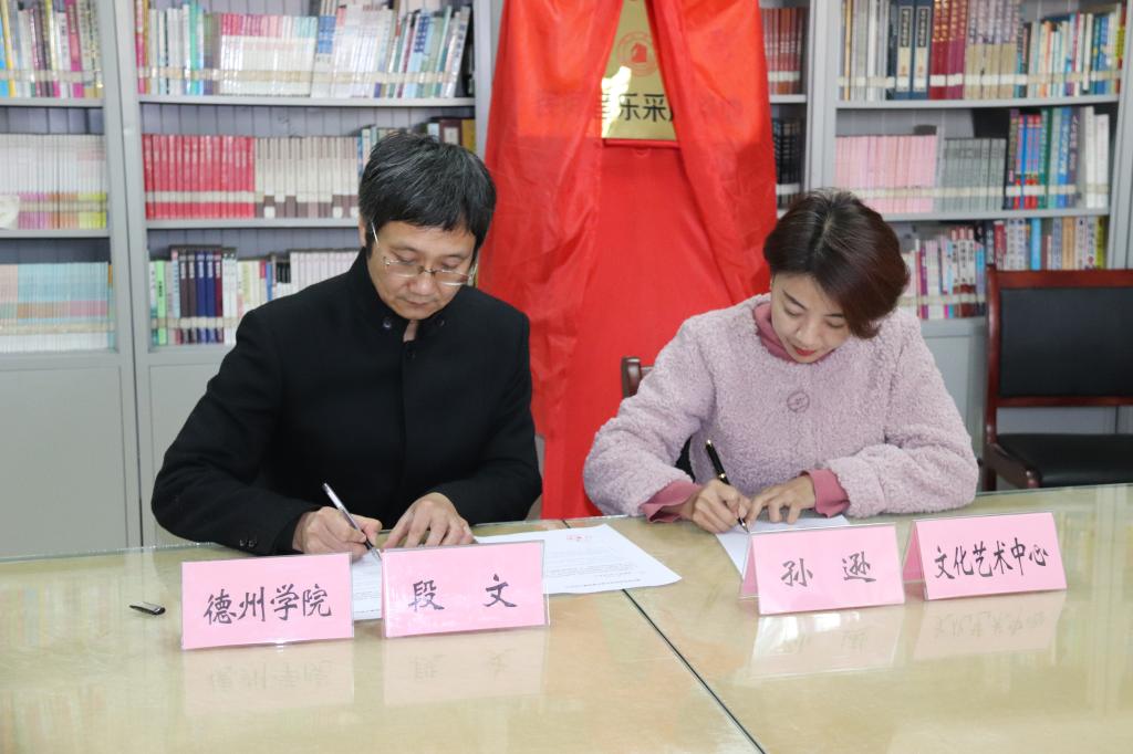 平原县文化旅游局副局长、文化艺术中心主任孙逊与我校久久久久久九九99精品大副院长段文等领导老师参加揭牌仪式。