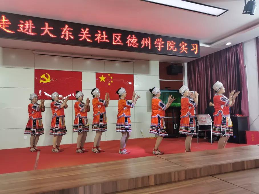 大东关社区的阿姨们也热情高涨,表演了精彩的舞蹈与诗朗诵,与大学生朋友们同台唱响新时代。参加演出和观摩的在校生们,通过阿姨们认真投入的舞台表演,也感受到了新时代社区文化艺术的水平与风采。