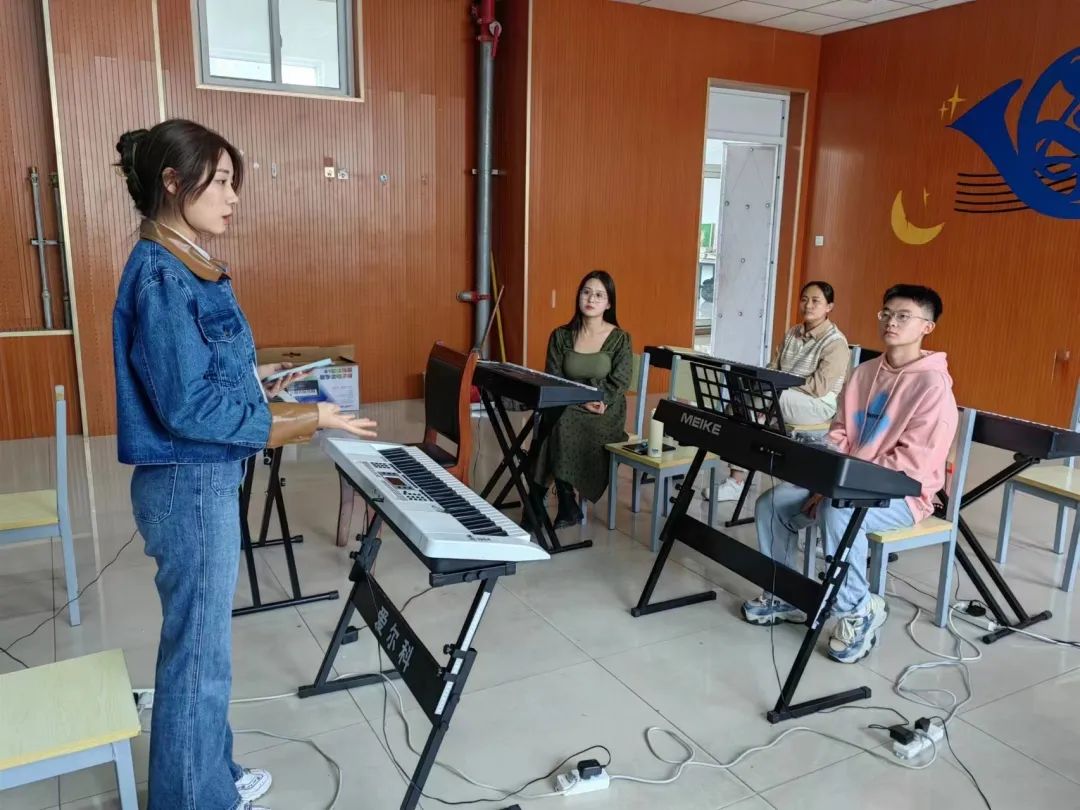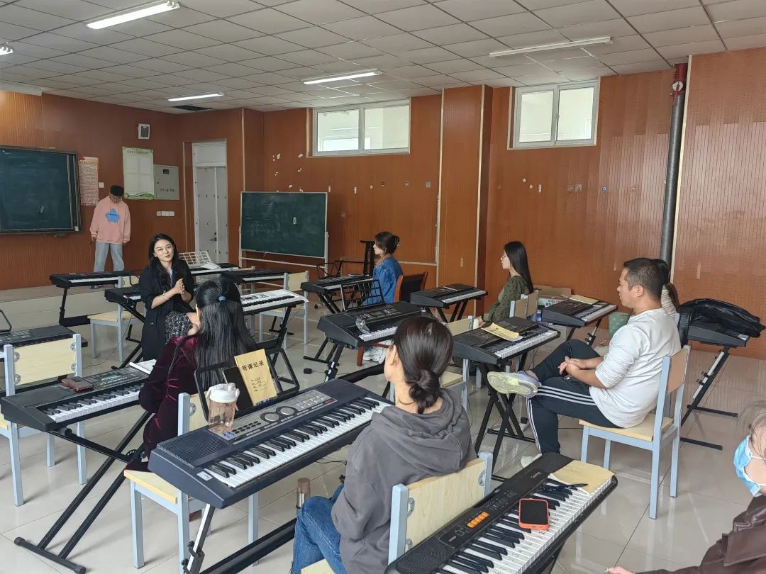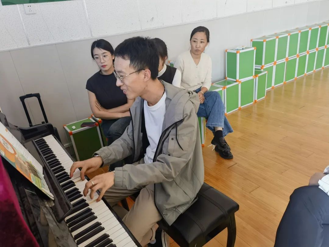 钢琴专任教师张利鑫与胡子钰老师,根据帮扶单位的需求对教师们的即兴伴奏进行系统的培训,从实用性角度出发,结合具体歌曲的伴奏,通过示范教学等方法,对帮扶对象的钢琴伴奏能力进行专业化、规范化的指导。