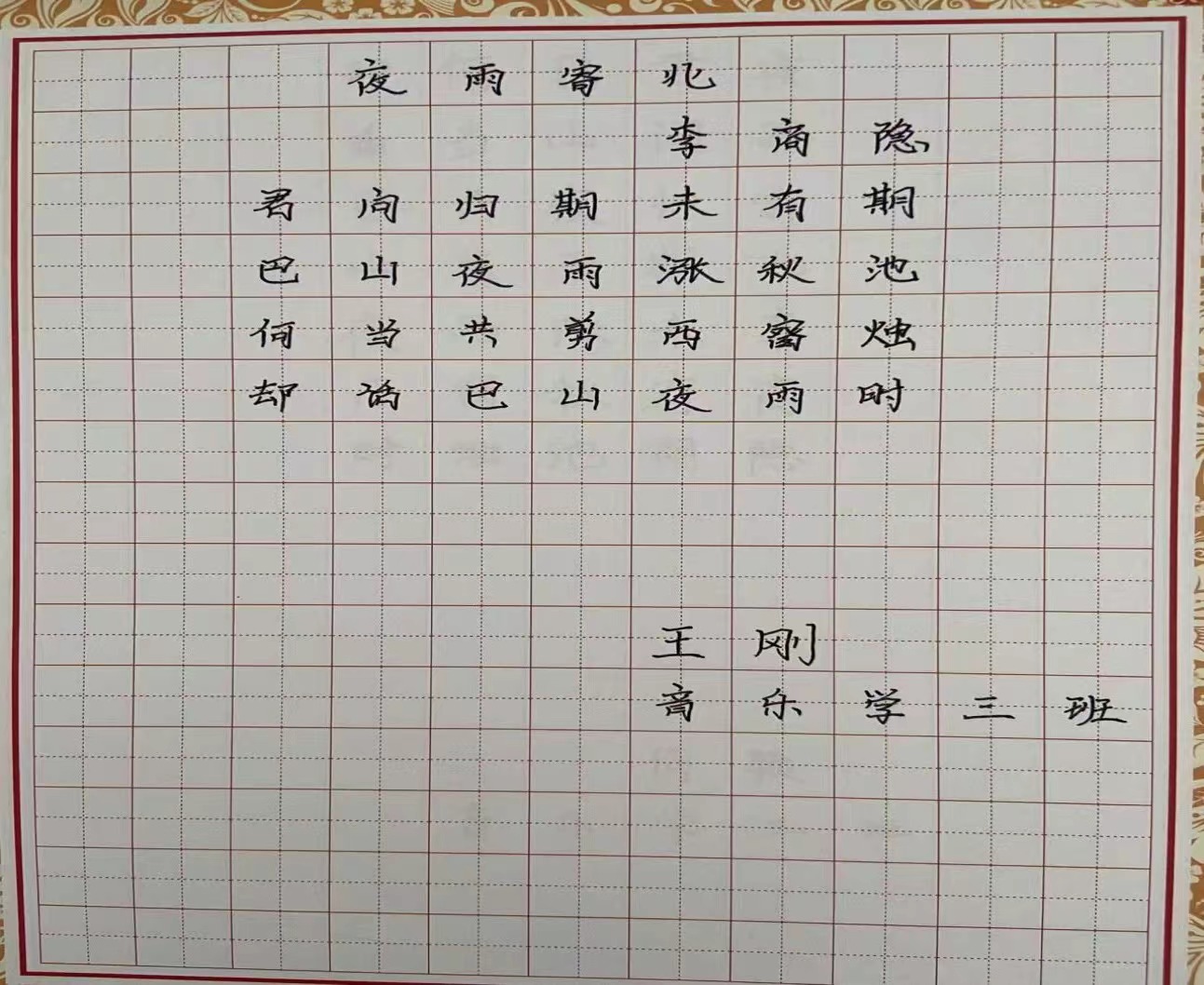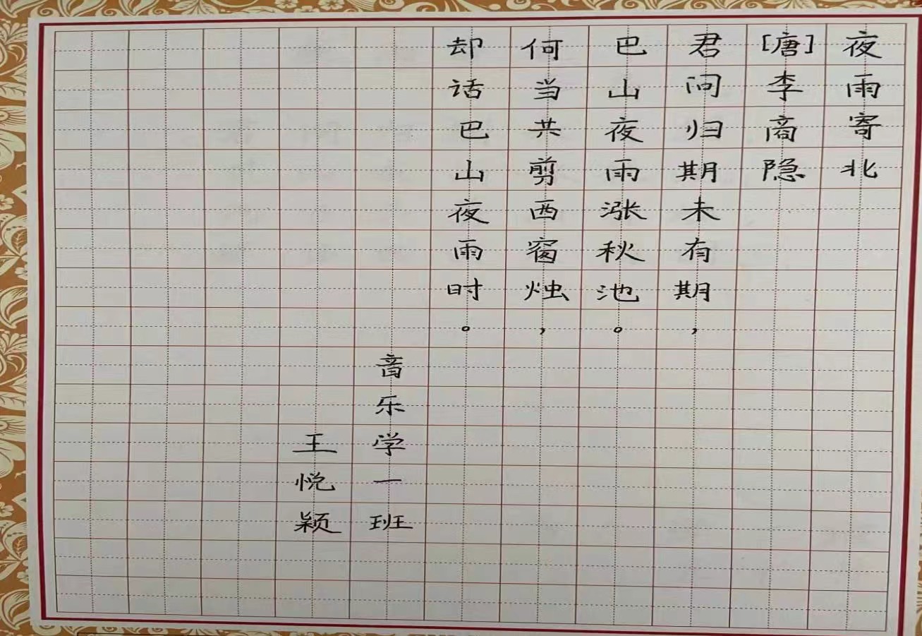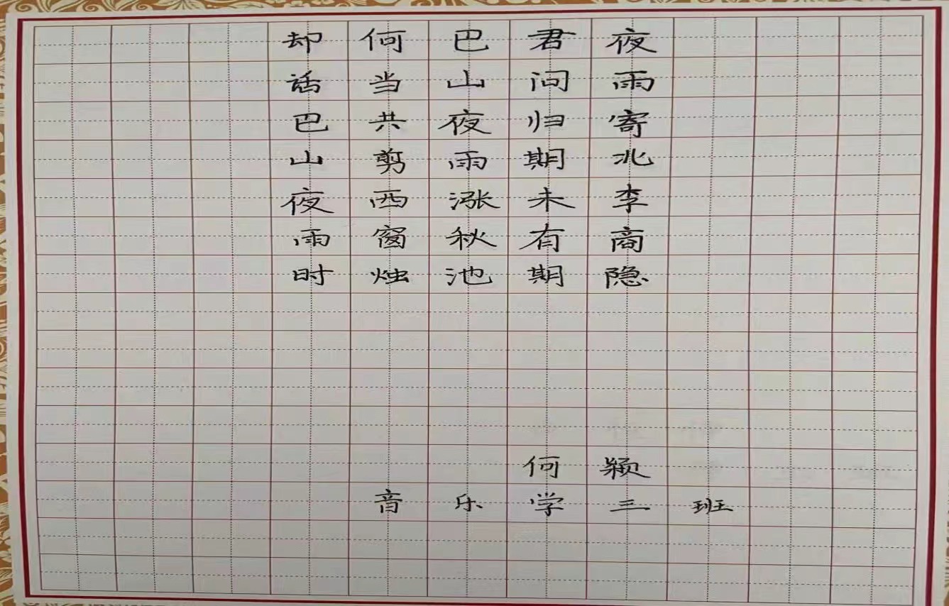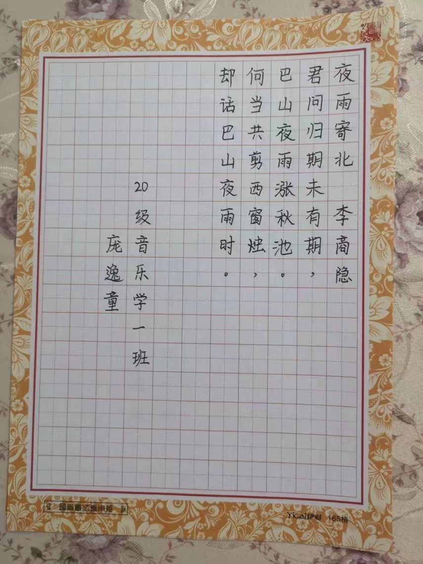 为提高师范类学生的职业素养与技能,加强学生对“三字一话”基本功训练的重视,5月24日我院在音乐楼3004教室举办了音乐学专业学生三笔字比赛活动。