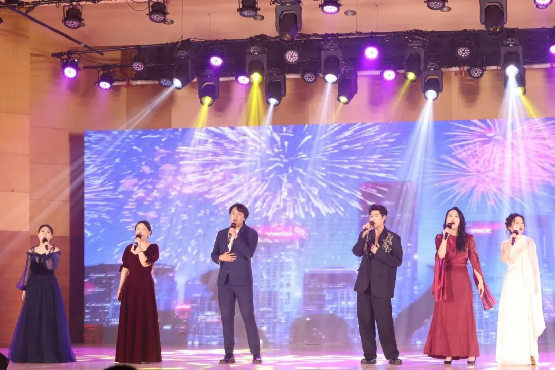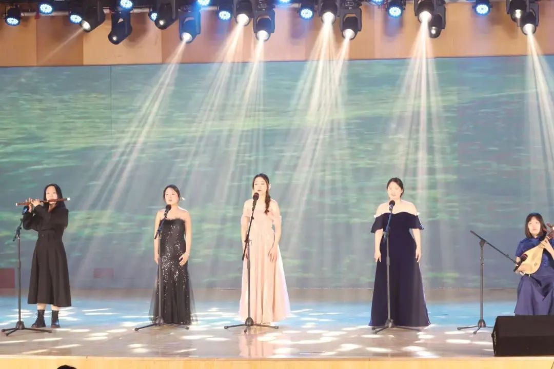 音乐会在男女合唱《如果有来生》中缓缓拉开帷幕。清澈的歌声如溪流淌过舞台,“我们去大草原的湖边,等候鸟飞回来”的歌词带着青春特有的憧憬遐想,瞬间点亮观众的眼眸。萨克斯重奏《苏州河》紧随其后,爵士乐的自由随性浸润着江南水乡的柔情,铜管乐器的金属质感与旋律的缠绵交织,为传统曲调注入新鲜生命力。
