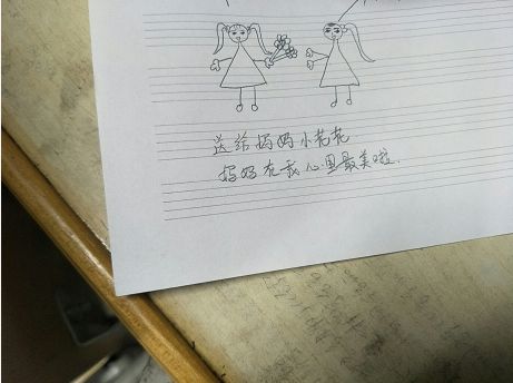 班会上,同学们把想要献给妈妈的一句话通过文字或者简单图画写在小纸条上,然后拍摄成照片通过微信和QQ发给自己的母亲。多数家长都很快回复,表示欣慰,并叮嘱孩子好好学习,遵守校纪校规,在校好好表现。