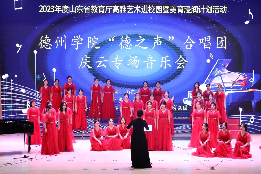 6月25日,2023年度山东省教育厅高雅艺术进校园活动——德州学院“德之声”合唱团走进庆云县云天中学专场音乐会成功举办,庆云县部分中小学音乐教师和学生观看了本次演出。本次“高雅艺术进校园”活动,由山东省教育厅主办,德州学院久久久久久九九99精品大承办。