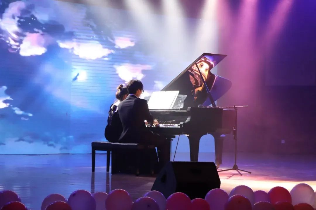 晚会现场,灯光璀璨,气氛热烈。从优雅的钢琴四首联弹《花之舞》,到感人至深的二重唱《老师,我想你》,再到古筝合奏《保卫黄河》,一场场精彩的表演轮番上演,每一个节目都充分展示了音乐学专业学生扎实的专业素养和非凡的艺术创造力。
