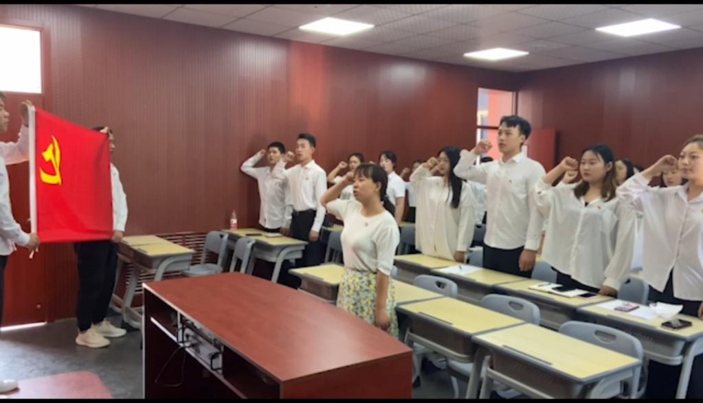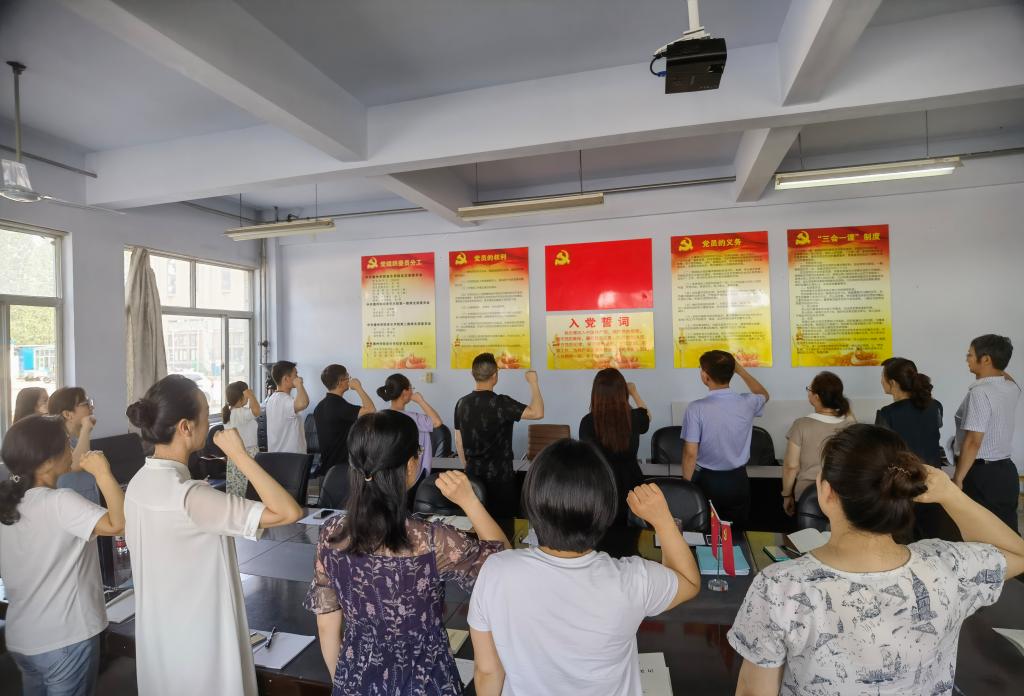 面对鲜艳的党旗,党员们举起右拳庄严宣誓:“我志愿加入中国共产党,拥护党的纲领,遵守党的章程,履行党员义务,执行党的决定,严守党的纪律,保守党的秘密,对党忠诚,积极工作,为共产主义奋斗终身,随时准备为党和人民牺牲一切,永不叛党”。铿锵恢宏的誓词,一字一句,神圣而豪迈,体现了对中国共产党的无限忠诚,大家以坚定有力的宣誓声,表达不忘初心、牢记使命的信念和决心。