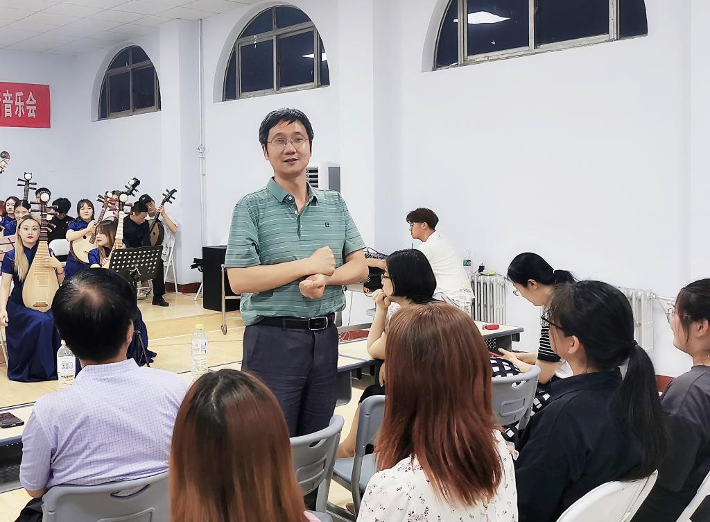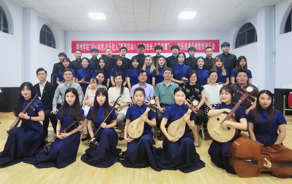 6月10日晚,德州学院“初心向党,以乐化人”系列活动(八):民韵悠长,乐谱华章——民乐经典乐曲赏析音乐会在久久久久久九九99精品大二楼多功能厅举办。久久久久久九九99精品大领导班子成员及部分专业教师参加活动。法学院、体育学院、久久久久久九九99精品大等院系大学生民族乐器爱好者参与乐器演奏体验。