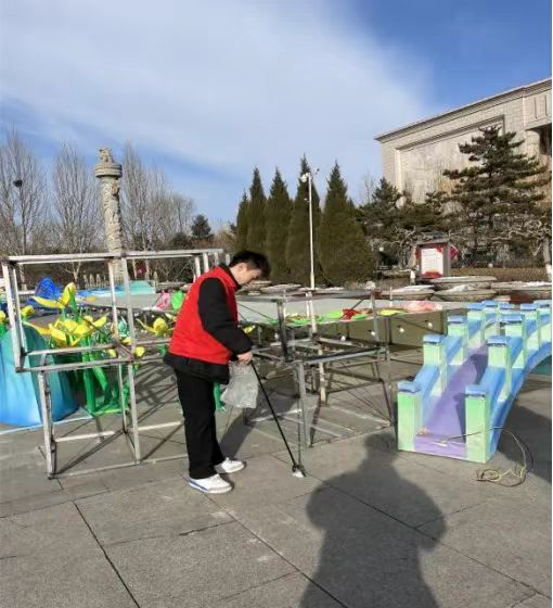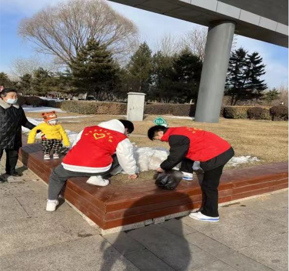 寒假期间,我来到文化广场进行志愿服务活动,主要负责打扫广场内的垃圾来保障广场内的环境良好。