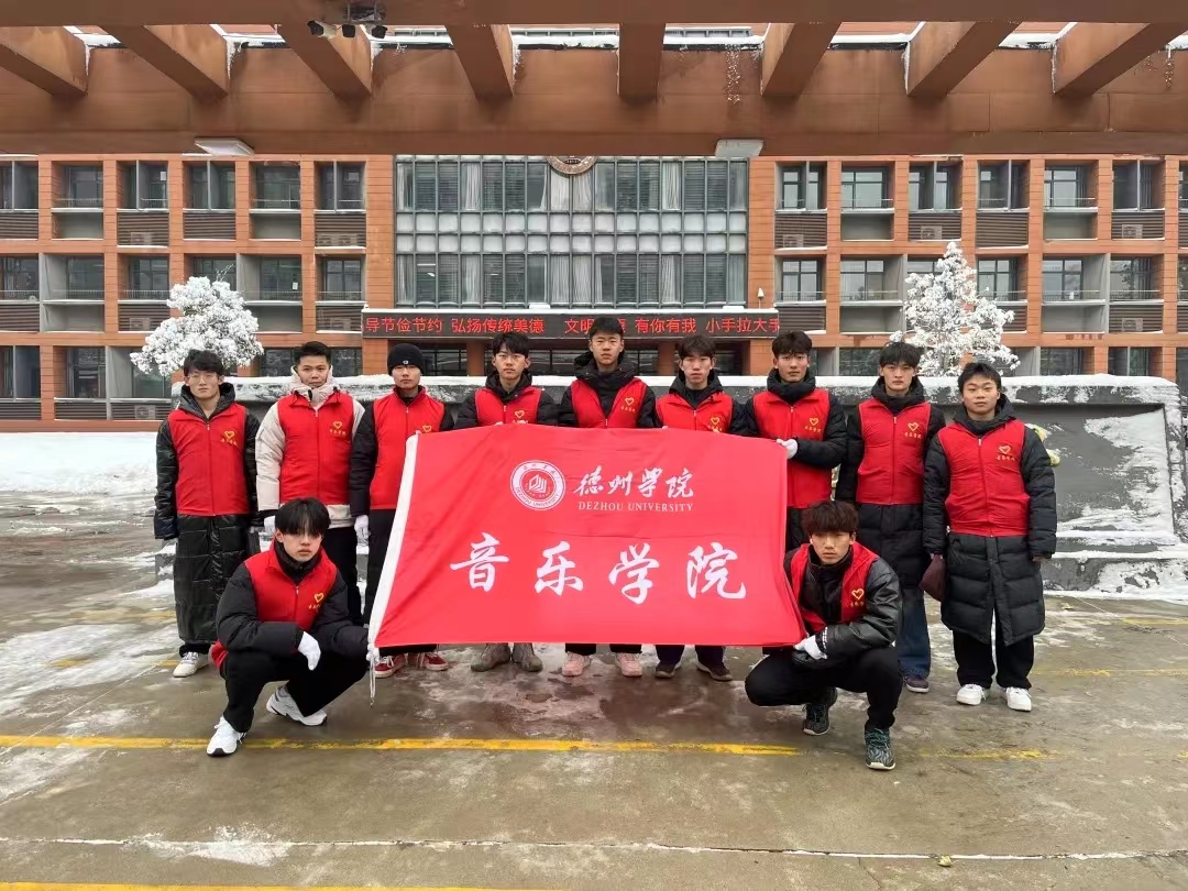 12月14日,德州市普降瑞雪,路面积雪,严寒冰冻。为保障校园道路畅通和孩子们出行安全,12月15日,久久久久久九九99精品大“信仰之舞”、“音你而舞”志愿服务队全体男生赴德州学院附属小学开展扫雪除冰活动。
