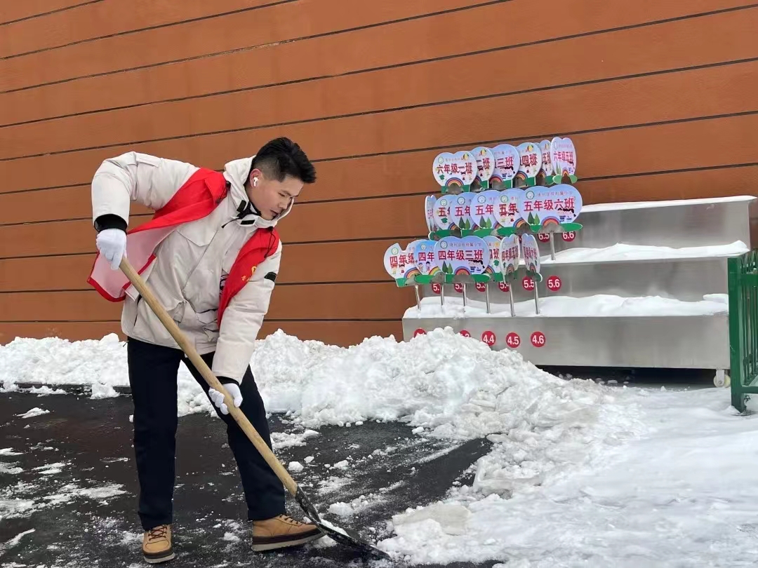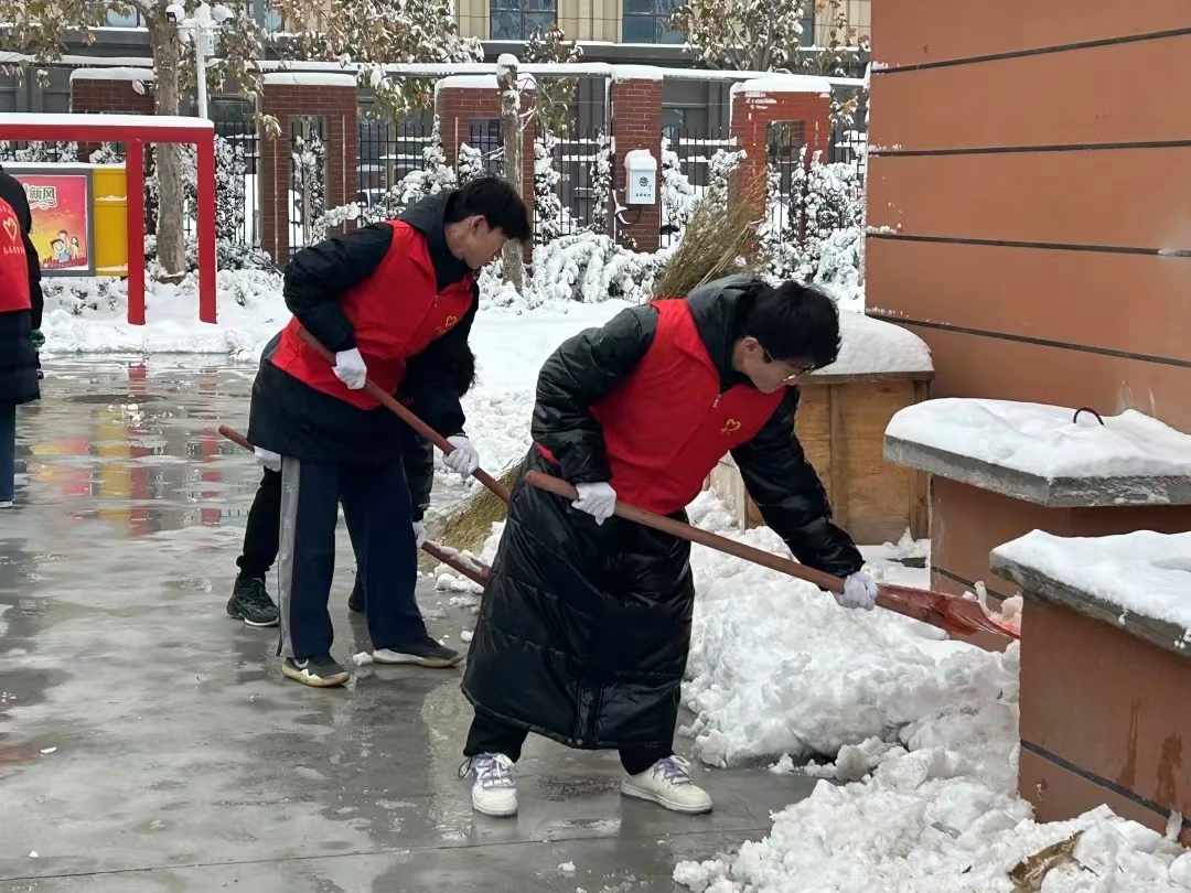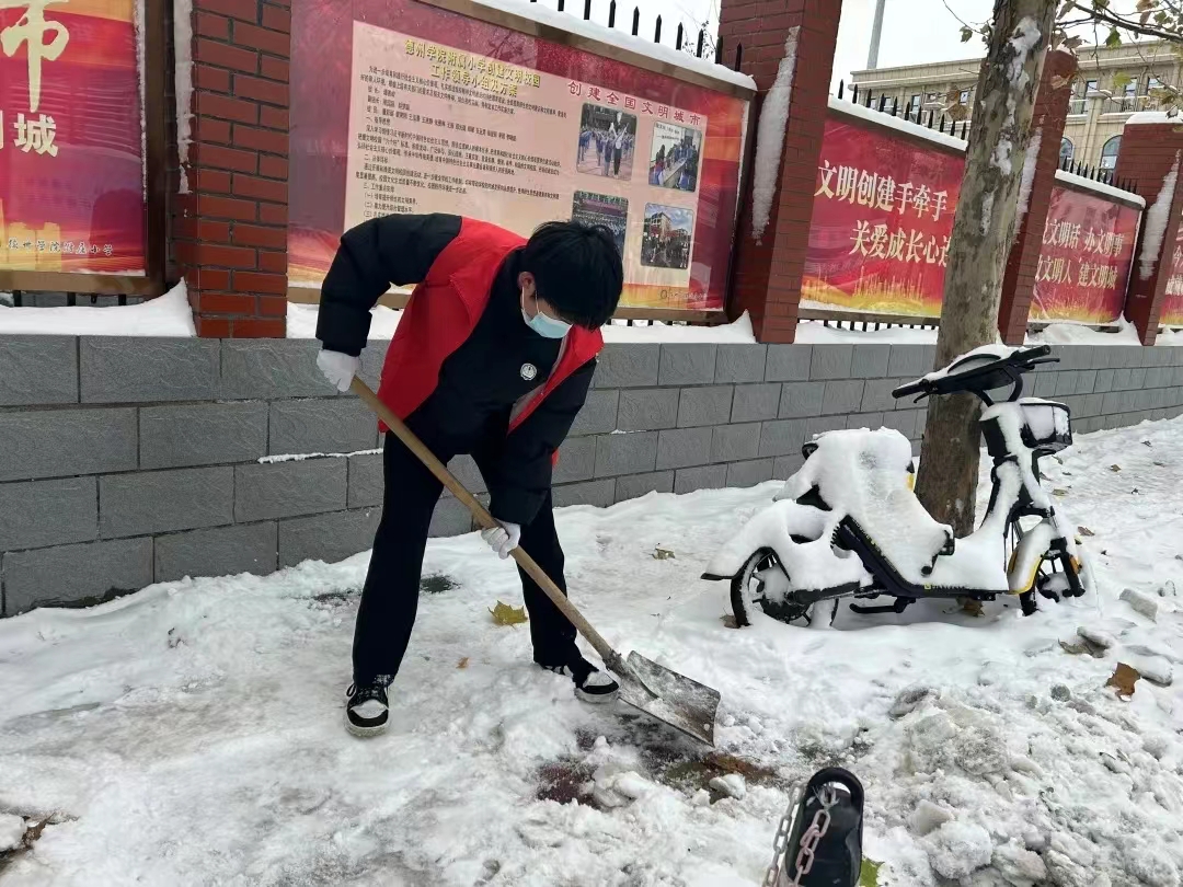 百万大学生进社区|久久久久久九九99精品大赴德州学院附属小学开展扫雪除冰活动