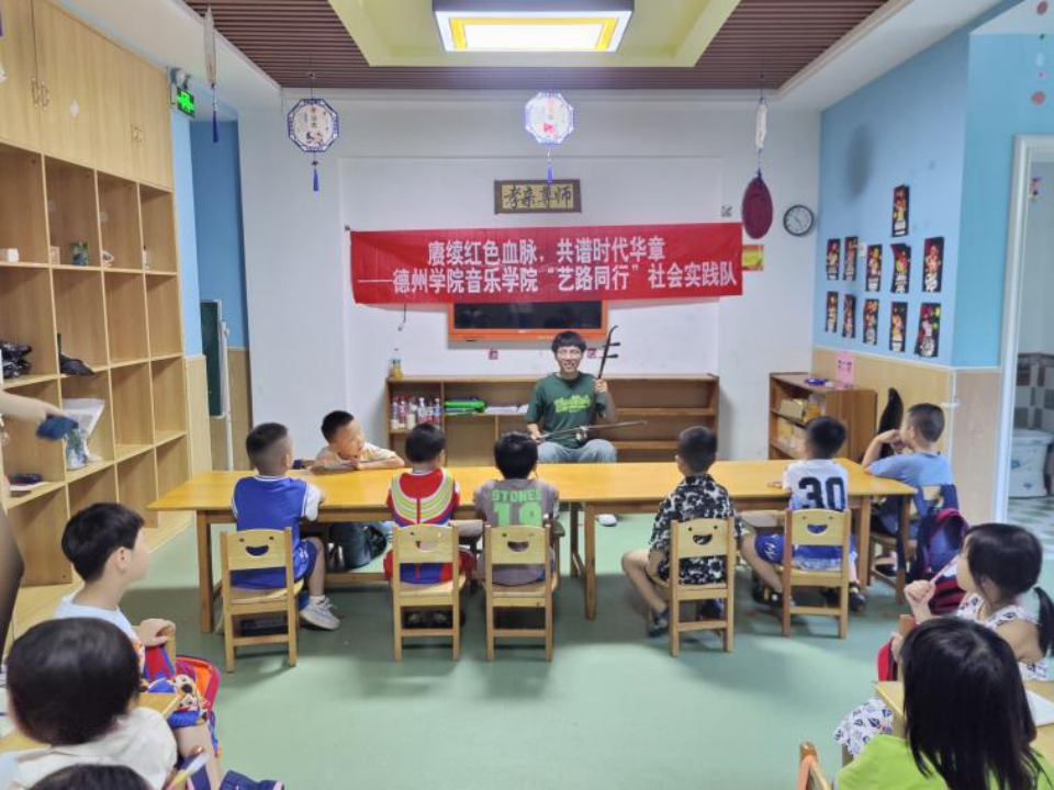 实践团于2023年8月15日在嘉福幼儿园开展了“赓续红色血脉,共谱时代华章”主题音乐活动。希望孩子们勇于表现自己,争做红色歌曲的传承者。