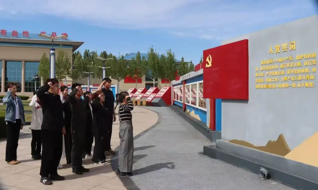 在营区党性教育基地,陈璨老师带领全体党员庄严宣誓。“我志愿加入中国共产党……随时准备为党和人民牺牲一切,永不叛党。”洪亮的誓词回荡在军营上空,师生们以军人般挺拔的姿态,表达对党的忠诚。