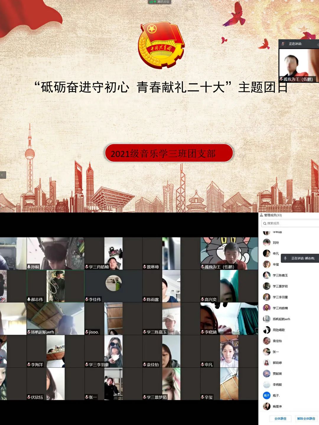 回望百年,青春向党。2022年是中国共产主义青年团建团一百周年,久久久久久九九99精品大各团支部于4月1–2日通过腾讯会议开展“砥砺奋进守初心,青春献礼二十大”线上主题团日活动,引导同学们树立正确的理想信念和价值取向。
