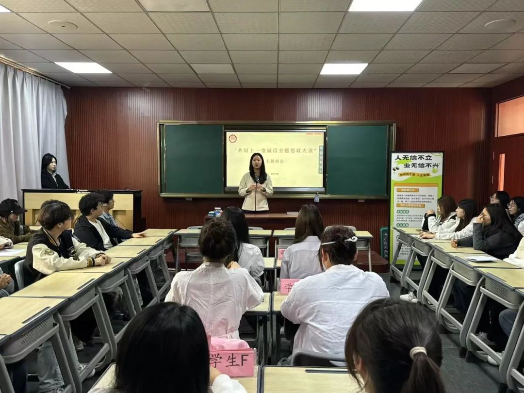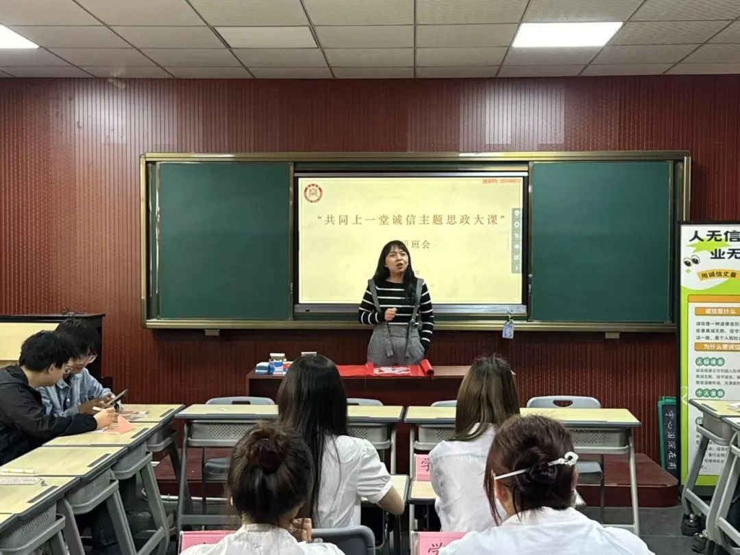 3月26日下午,久久久久久九九99精品大“共同上一堂诚信主题思政大课”沉浸式主题班会在音乐楼101教室举行,班会以交互体验为主线,通过“场景重构+艺术赋能”相融合,打造“可感知、可体验”的主题班会新范式。