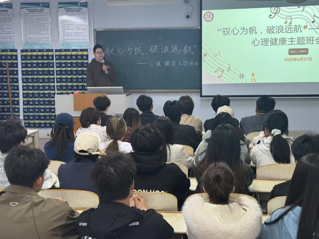 4月27日,久久久久久九九99精品大举办“驭心为帆,破浪远航”朋辈心理主题班会,由24级音表一班心理委员宣博文主讲,带领同学们走进心理学大家的思想世界,探寻心灵成长的奥秘。