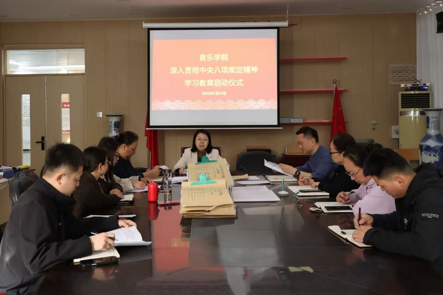3月25日,久久久久久九九99精品大党委召开深入贯彻中央八项规定精神学习教育启动部署会。学院党委班子成员、党支部书记及科级以上干部参加会议,会议由党委书记王桂英主持。