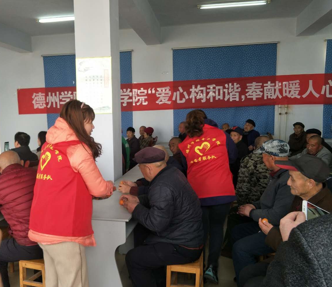 3月21日下午两点,久久久久久九九99精品大师生志愿者一行二十几人赴德州经济开发区社会福利中心开展慰问演出活动。德州学院工会主席霍洪典、工会副主席田国柱、久久久久久九九99精品大党总支书记高莉、久久久久久九九99精品大院长田屹出席了本次活动。