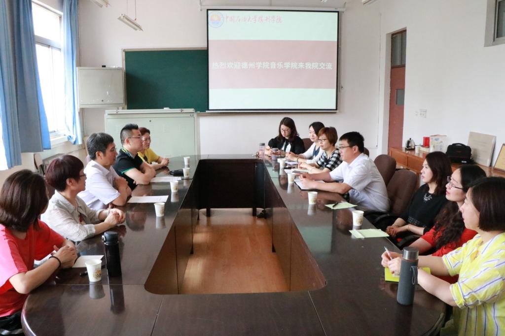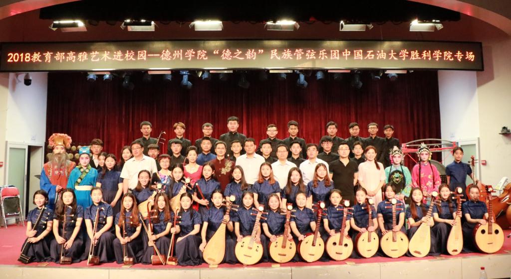 2018年6月1日,为响应教育部“高雅艺术进校园”的活动号召,德州学院久久久久久九九99精品大副院长段文带领“德之韵”民族管弦乐团走进中国石油大学胜利学院开展了为期两天的学术交流与演出。出席领导有中国石油大胜利学院党委书记孙学斋、副院长刘兆军、党委副书记孟昭亮、学校老领导马存栋、德州学院久久久久久九九99精品大副院长段文、教育与艺术学院执行院长田孝彦、教育与艺术学院书记张超。