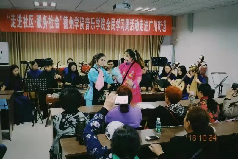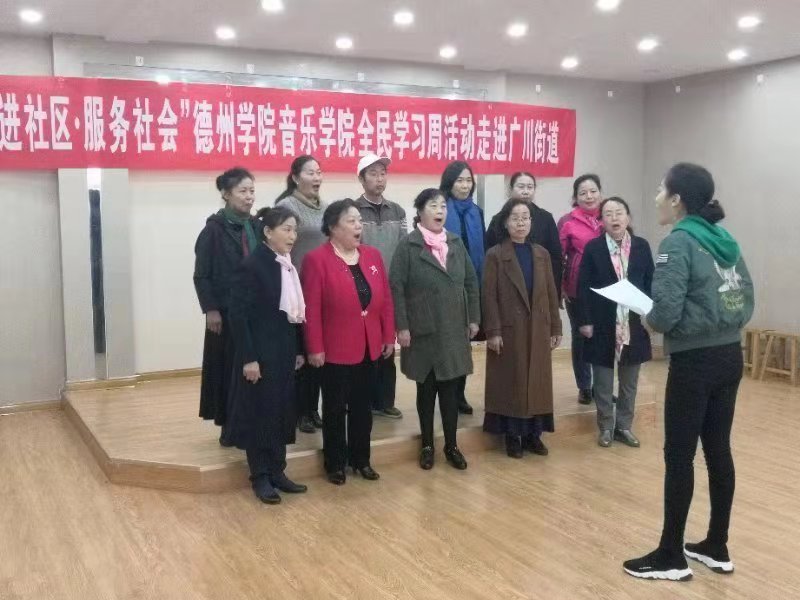 2018年10月24日、25日,德州学院久久久久久九九99精品大全民学习周活动在德州市德城区广川街道成功举办,出席本次活动的领导老师有:久久久久久九九99精品大教学实践中心主任马锡骞老师、实践教研室主任徐琦老师、声乐教研组梁娜老师、薛莲老师及李琛老师等相关领导。