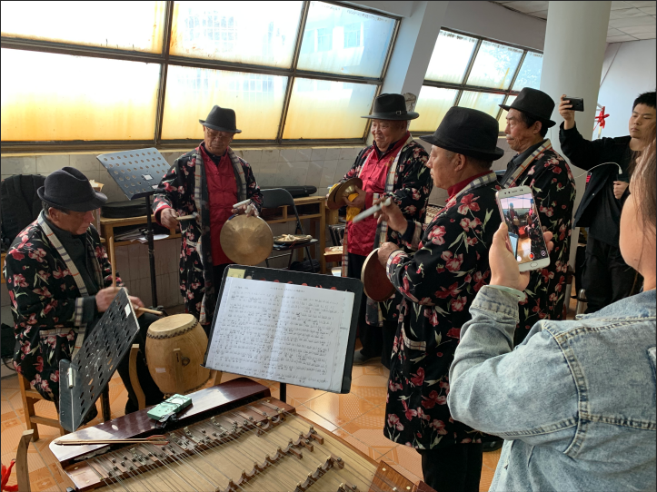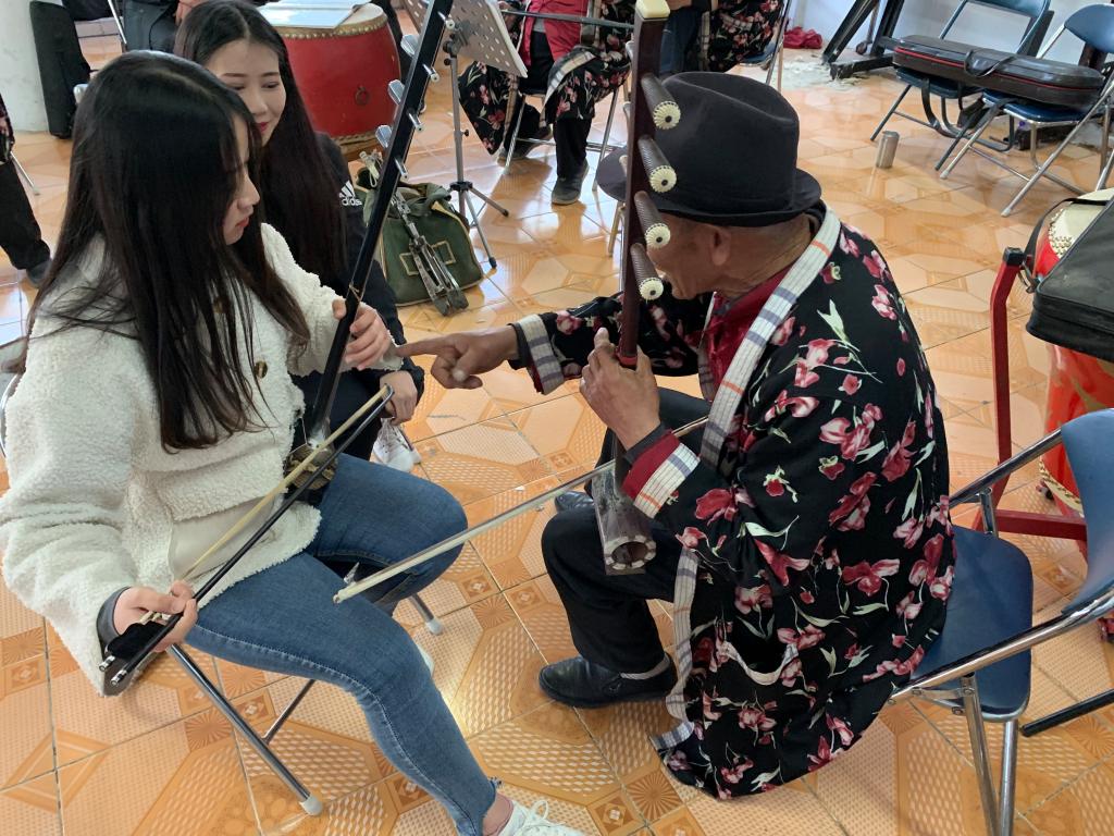 在活动现场,双方演出了“一勾勾”戏曲《王小赶脚》、《吕蒙正坐寒窑》等经典唱段,之后双方演员及乐队人员进行了唱腔、乐谱、乐器演奏等方面的交流与学习。本次活动旨在更好地发挥高校传承文化、服务社会的职能,近年来,德州学院对鲁北民间音乐文化进行系统调查、理论研究,并将民间音乐传承学习纳入课程体系,有效地将国家课程、地方课程和高校课程有机结合,从着眼文化传承、服务地方的目标出发,带领学生走出校园,进行田野考察、采风,与民间艺人主动接触、交流,举办和参与了一系列文化活动,成功开展了鲁北民间音乐文化传承创新与实践。系列活动极大地提高了我校师生对非物质文化遗产保护传承的意识和水平,并为建设完善“十三五”重点学科提供了相对完整的理论研究与实践相结合的经验和方法。