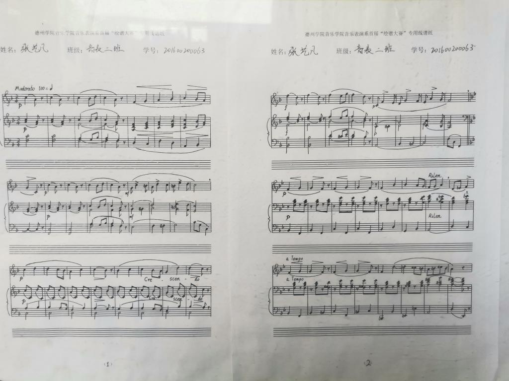 绘谱是《视唱练耳与乐理》课程的基本功,此次比赛极大增强了我院音乐表演专业学生对乐谱书写的重视程度,提高了学生的记谱能力,同时也丰富了学院音乐文化生活,推动了校园文化建设。