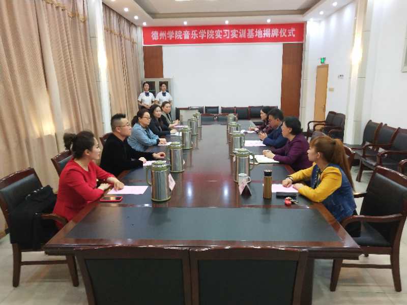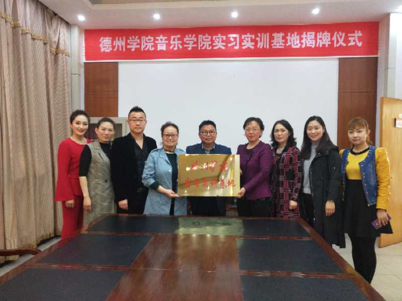 4月29日,久久久久久九九99精品大院长田屹、音乐表演系主任宫莉、音乐教学实践中心主任马锡骞赴德城区新湖街道办事处,举行校外实习实训基地签约揭牌仪式。德城区区委宣传部副部长李金奎、新湖街道办事处党工委副书记、主任邢建红出席了本次揭牌仪式。