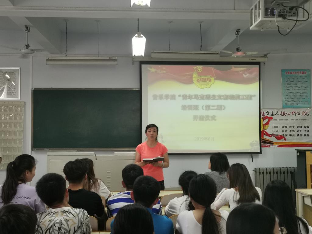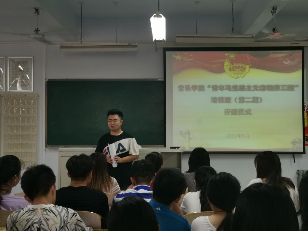 6月18日,久久久久久九九99精品大在音乐楼2004教室举行“青年马克思主义者培养工程”培训班(第二期)开班仪式。党总支副书记贺昱、团总支书记史璇、辅导员李曼宁及60名学员出席活动。