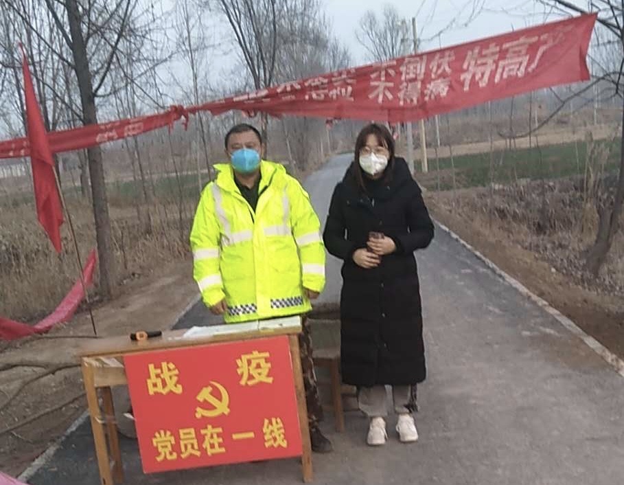 在山东省德州市平原县前曹镇北油坊村村口,一支笔、一叠表、一张板凳,一坐就是一整天,这是2018级音乐学一班学生姜亚轩每天的工作,她和村民们一起严守村口的第一道“防疫关卡”。