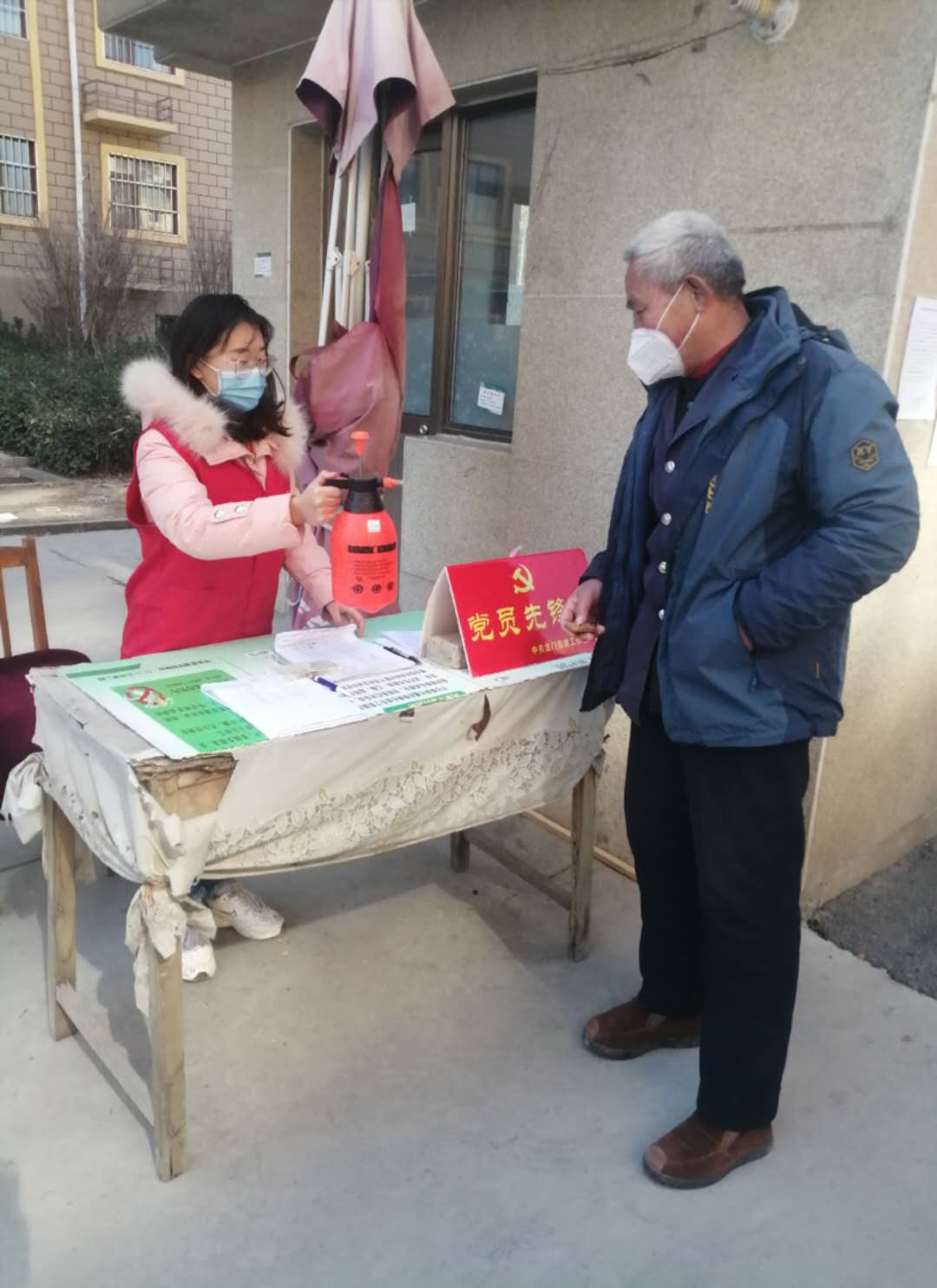 2018级音乐学二班学生张玉满,在山东省德州市平原县清华园小区劝返外来人员,为进出人员登记,办理出入证,消毒及量体温。