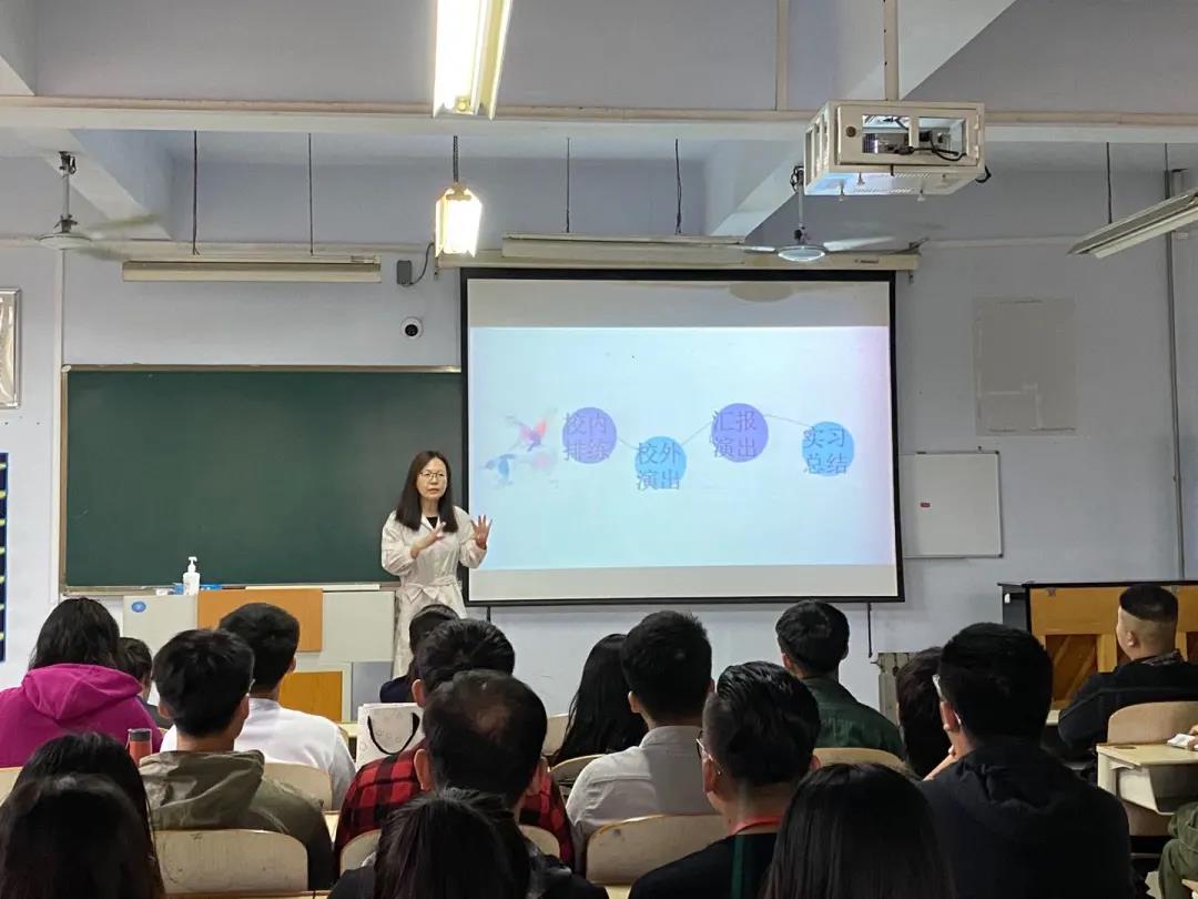 贺昱副书记要求同学们实习期间,要严格遵守各项规章制度,虚心学习,团结协作,圆满完成实习任务。实践教研室主任梁娜对音乐表演专业毕业实习设计进行解读。对校内实习、校外实习的目标、具体任务以及各实习单位的基本情况作了详细的介绍,并向2017级同学展示了往届毕业生毕业实习走入社区、走进中小学校、服务乡村的精彩资料。