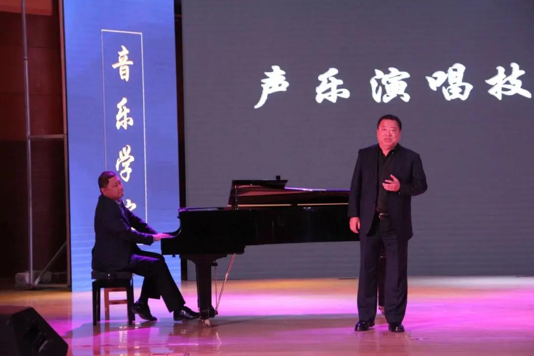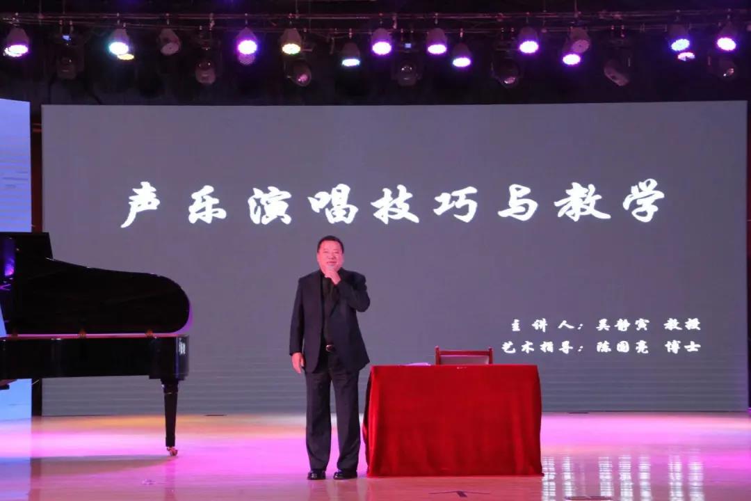 本次讲座分为三部分,第一部分是声乐理论知识的讲解,吴教授用他多年学习生涯的经历,以例证的形式层层剖析声乐学习中的重点和难点,讲解了声乐学习中气息的支点、歌唱共鸣的要求、声乐学习的执着追求等系列问题。