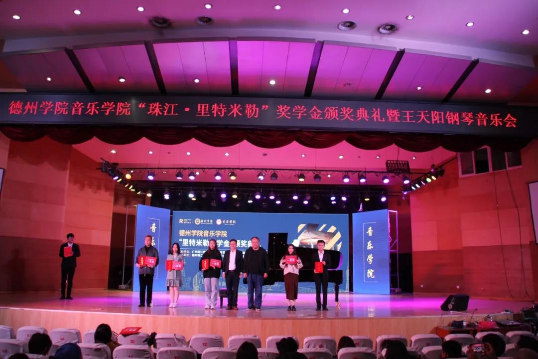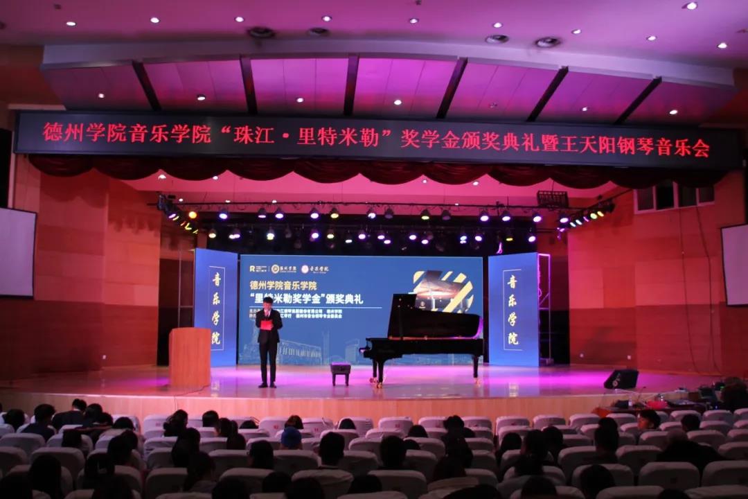 11月23日晚七点,久久久久久九九99精品大“里特米勒奖学金”颁奖典礼暨王天阳钢琴独奏音乐会在南校音乐厅隆重举行。德州学院合作发展处刘晓东副处长、广州珠江钢琴集团股份有限公司副总经理陈宣德、珠江钢琴集团广州珠江恺撒堡钢琴有限公司销售部业务经理黄健勇、珠江钢琴德州地区经销商德州珠江琴行总经理高文涛、久久久久久九九99精品大领导班子成员共同出席。