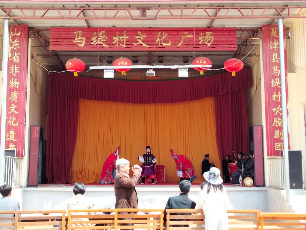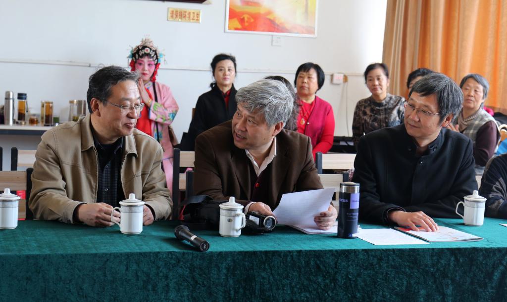 在夏津马堤村观看了马堤吹腔剧团演出后,张教授向团长王玉坤和演员们了解了吹腔的五大曲牌和具体的唱腔。对于如何破解马堤吹腔的传承困境,张教授提出从“村落传承”的角度进行更高级别“非遗”的申报,对于下一步的保护工作具有重要意义。