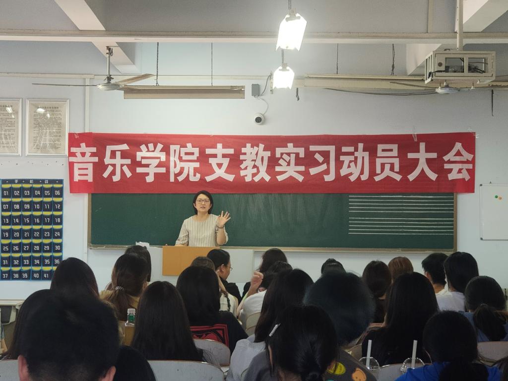 9月7日下午,久久久久久九九99精品大在0261教室召开了2018级支教实习动员大会,久久久久久九九99精品大党总支副书记米彦、音乐学系主任杜乡,支教实习带队老师及全体支教生参加了此次动员大会。会议由杨祎老师主持。