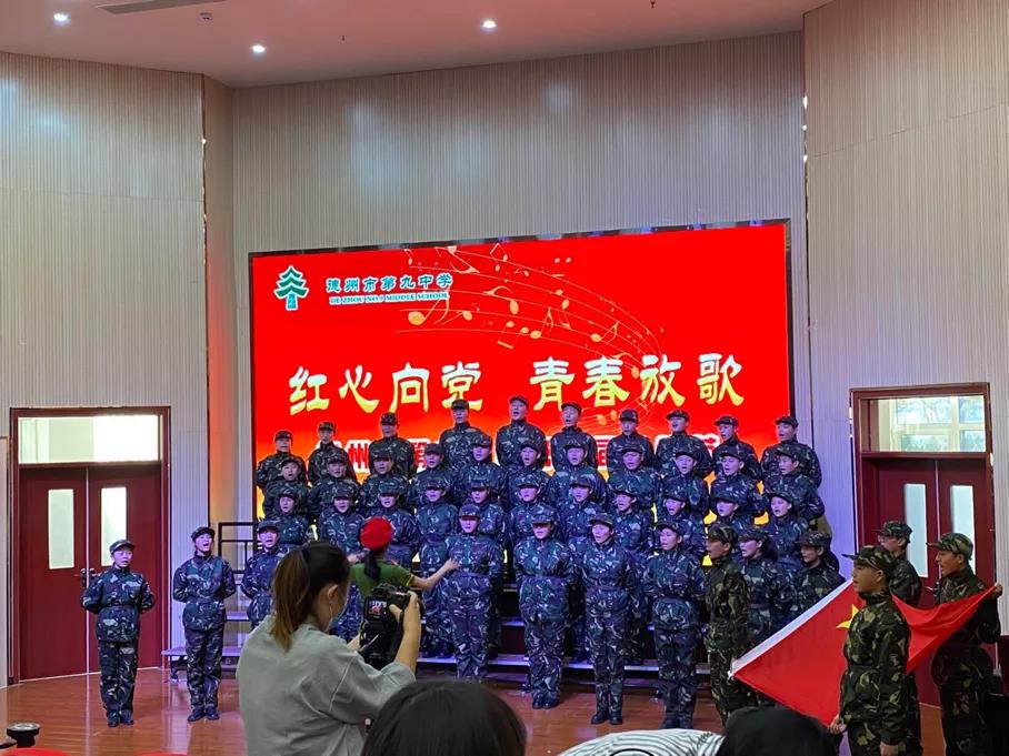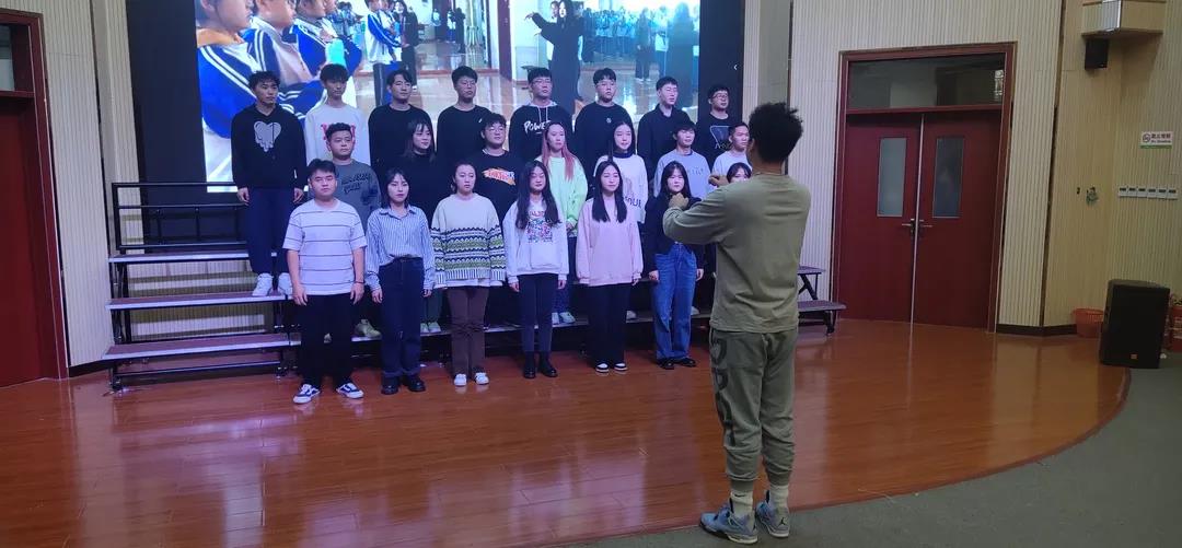 本次比赛前期,音乐学院19级音乐学专业学生通过在德州九中实习实践的教学环节,为参赛初一班级进行了为期一个多月的合唱排练指导,从协助各班班主任挑选曲目到教唱、排练、设计队形,同学们都积极投入到排练中,为合唱比赛的成功举办贡献了一份力量。