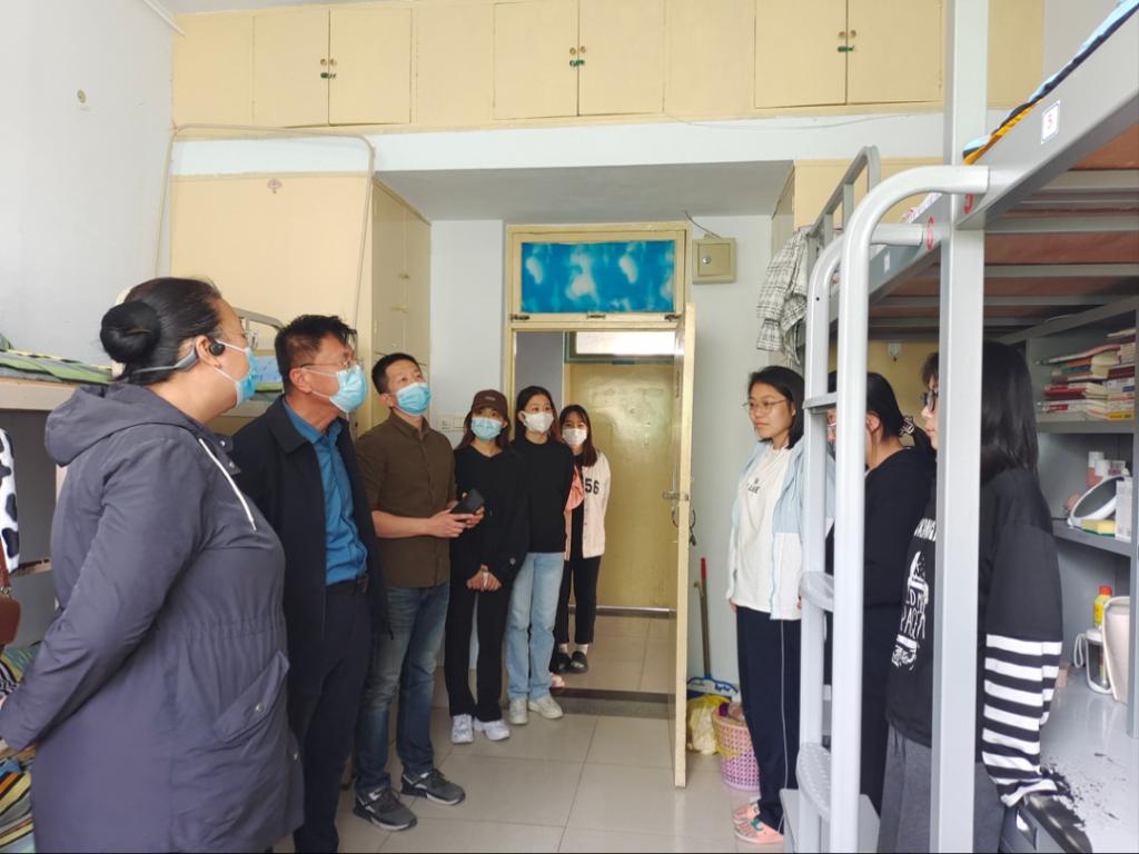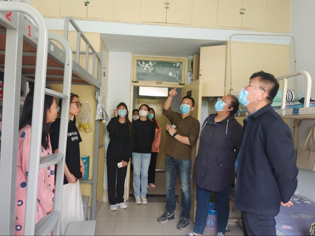 在走访过程中,老师们仔细查看学生宿舍生活、清洁卫生情况以及用电等方面情况,叮嘱同学们增强安全用电防火意识,营造积极健康的生活方式。领导就学习、生活等方面与同学们进行了深入的交流,并就学生关心的问题进行了解答,刘志华书记提出:要积极配合学校做好疫情防控工作,严格遵守相关防疫规定,遵守学校各项规章制度,坚决杜绝违规用电的违规行为,确保宿舍安全。副书记米彦对宿舍违规电器和安全隐患进行检查,辅导员禹亚辉强调注意宿舍卫生,勤消毒多通风。