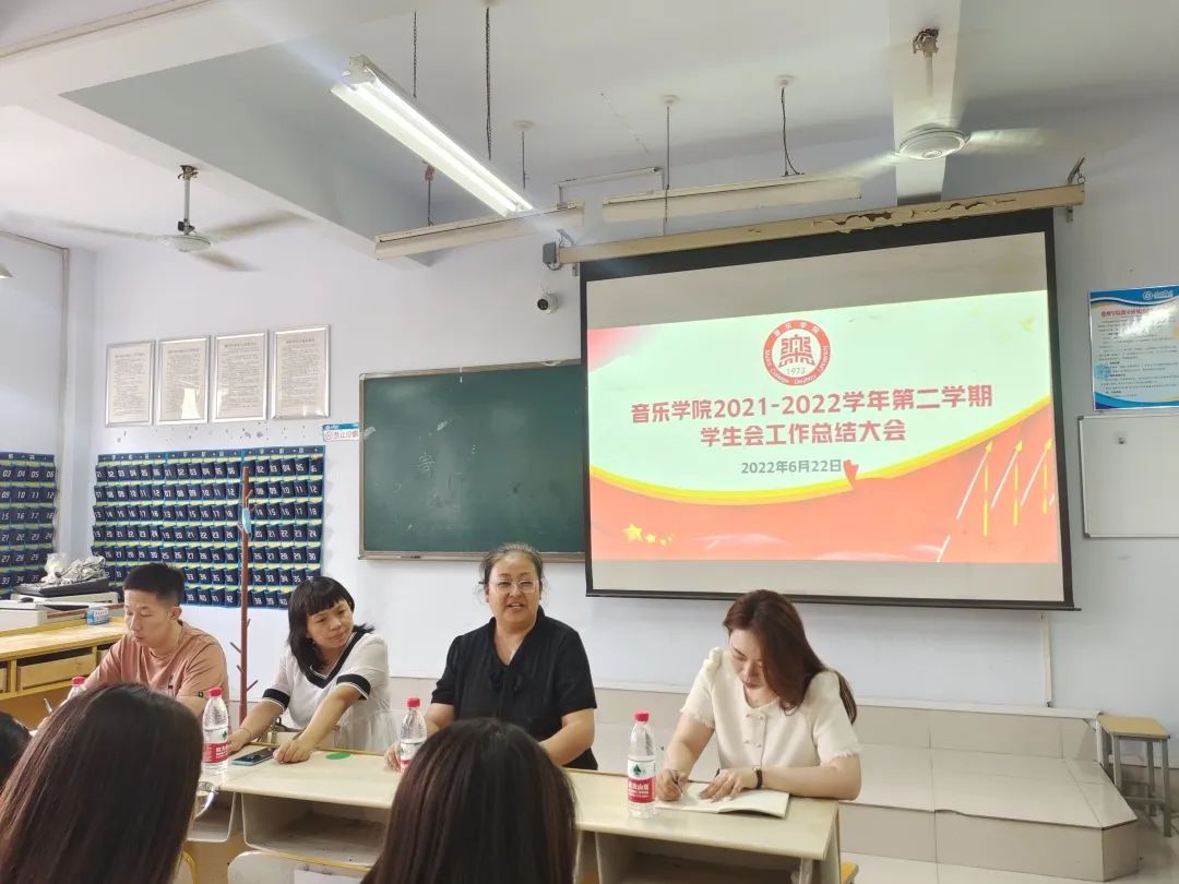 为全面总结本学期学生会工作情况,做好下一步学生会工作计划,6月22日,久久久久久九九99精品大在0349教室召开了学生会工作总结大会。党委副书记米彦、团总支书记陈璨、辅导员李曼宁、辅导员禹亚辉、学生会全体成员、班干部共同参加。