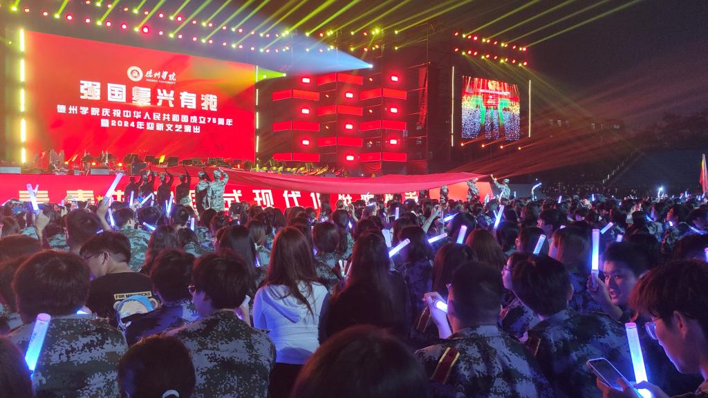 最后,全体师生合唱《歌唱祖国》,庆祝国庆,迎接新生。歌声嘹亮,充满激情和力量,观众们全体起立,跟着节奏拍手合唱,整场演出在热烈的掌声和欢呼声中圆满落幕。