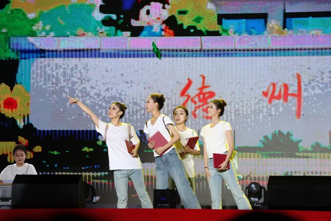 我院学生吴凯凯、韩欣洋、张思涵、刘弘悦等带来的情景短剧《芳华待灼,学在德院》引领观众进入了第二篇章。刘哲硕、王静蕾、孙皓林、陈雨鑫等同学带来的歌舞《百年》以激昂的旋律和欢快的节奏庆祝了百年的辉煌历程,歌声嘹亮而悠扬,舞姿优美而轻盈,场面热闹非凡。