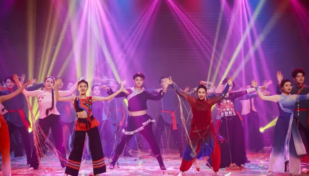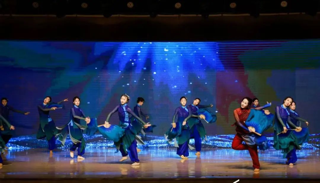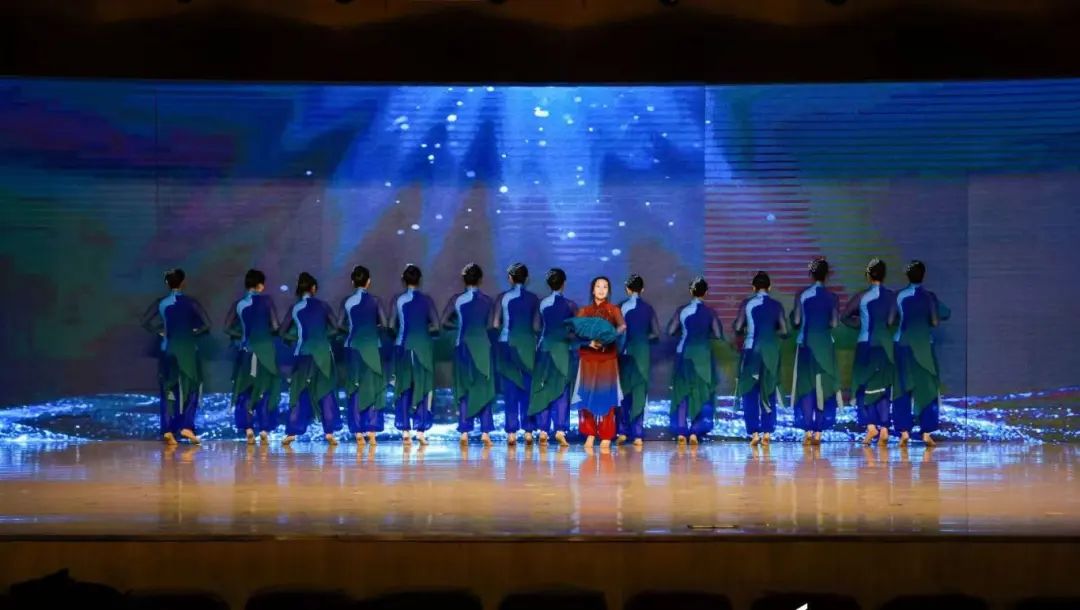 《一条大河》以扇子为道具的群舞,用旋转与流动的韵律模拟大河蜿蜒。舞者身段如水,既展现江河孕育文明的厚重,又诉说人与河流共生共荣的情感。