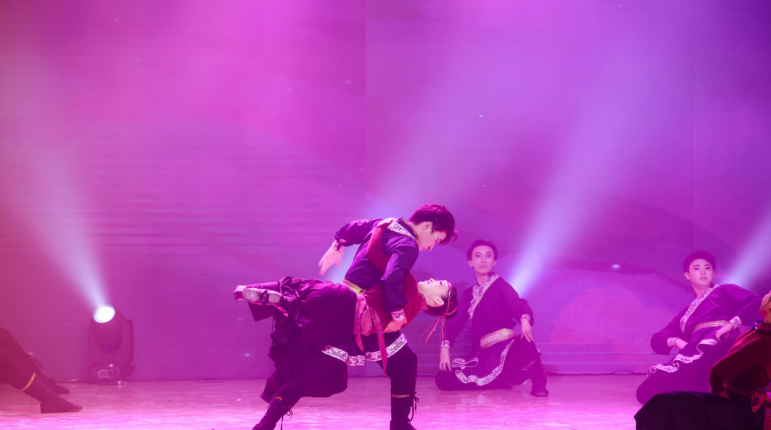 《草原汉子》以剽悍的舞姿诠释马背民族的热血豪情。硬挺的肩线、有力的跺脚,配合激昂的音乐,仿佛让观众看见草原雄鹰在天地间自由翱翔。