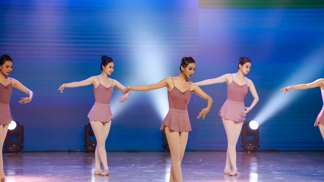《芭蕾基训组合》中舞者们以标准的芭蕾基训动作展现扎实功底。足尖闪烁的光芒不仅是技巧的呈现,更是逐梦路上的信念之光。