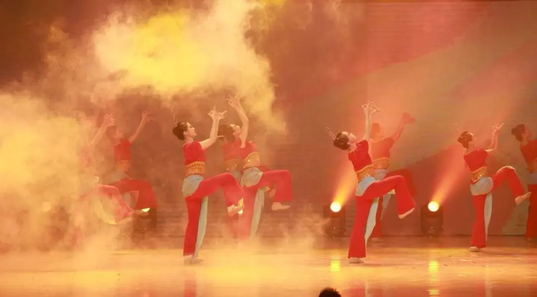 《鼓子秧歌组合》源自鲁北地区的鼓子秧歌以粗犷豪迈的风格点燃舞台。舞者挥动鼓槌,动作刚劲火爆,黄土地的雄浑气韵随着跃动的身姿肆意迸发,尽显北方农耕文化的剽悍与热情。