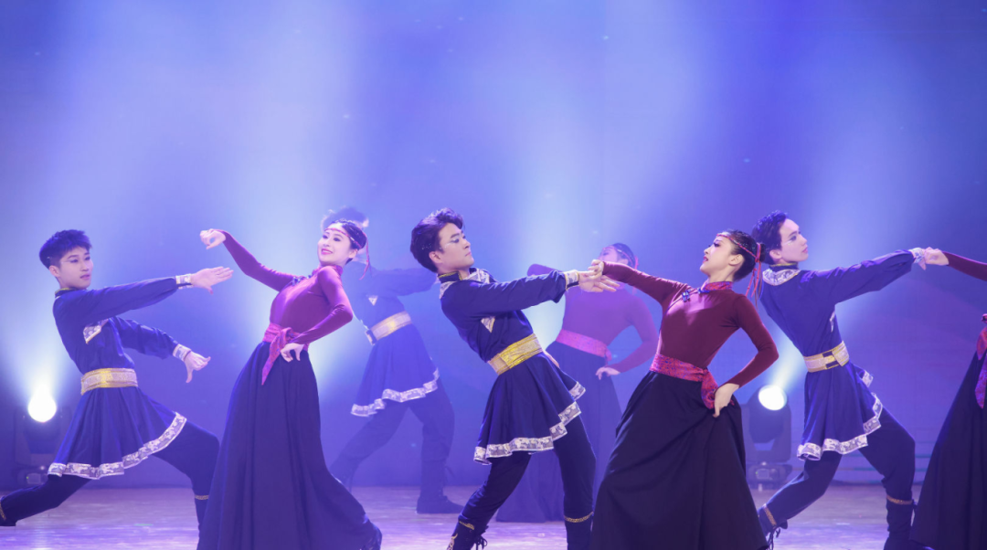 《三个老阿佳》聚焦藏族阿妈形象的群舞,以质朴舞姿展现跨越半世纪的友情。勾勒出高原女性勤劳乐观的生命底色,传递岁月沉淀后的豁达与坚韧。