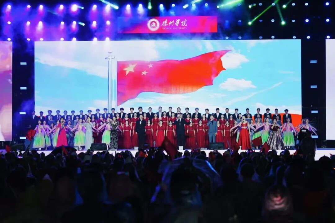 最后,由我院教师刘洋、魏丽、马石、王慧、贾雪莹、龚娇娇、马瑞、吴振飞老师主唱,“德之声”合唱团伴唱的歌曲《再一次出发》为第三篇章画上句号。老师们用充满激情的歌声,表达了2025级新生在德州学院开启新征程的决心和勇气,也让新生们对未来的大学生活充满了期待。