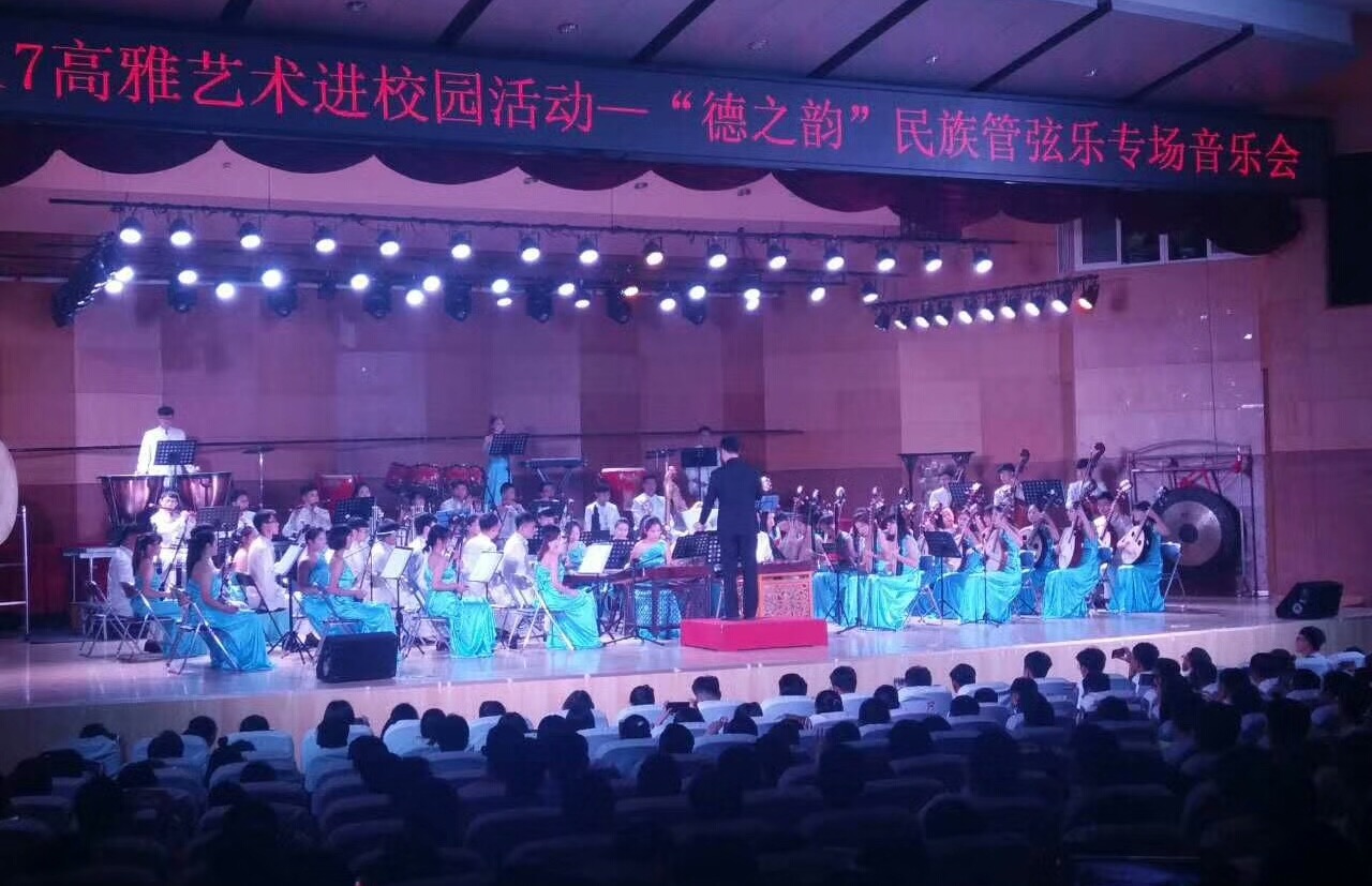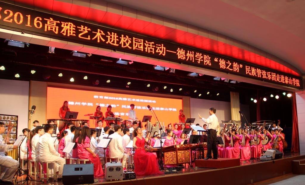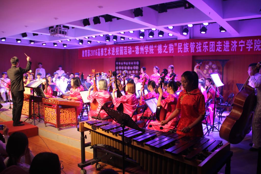“德之韵”民族管弦乐团由德州学院久久久久久九九99精品大段文教授任常任指挥; 并聘请原山东歌舞剧院院长曲祥为乐团艺术指导,定期为乐团排练。多年来,乐团在自身发展过程中既注重对传统的继承和发扬,又不断开拓创新,始终立足于弘扬中国民族音乐,逐步形成了自己的特色和风格,经过长期刻苦的排练和实践,排演了大量的优秀作品。2013年成功加入由教育部、文化部、财政部主办的“高雅艺术进校园”活动序列。乐团多次与山东省实验民族乐团、台湾“琴园”国乐团等合作、交流演出,在校内外举办的各种大型文艺晚会中都有出色表现,得到了专家领导和广大师生的一致好评。