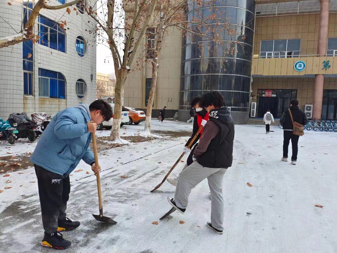 “风雪无情人有情,除冰扫雪暖人心”,本次活动中充分体现了团结、友爱、奉献的精神希望这份温暖如同冬日的暖阳,传递给来往的每一位师生。