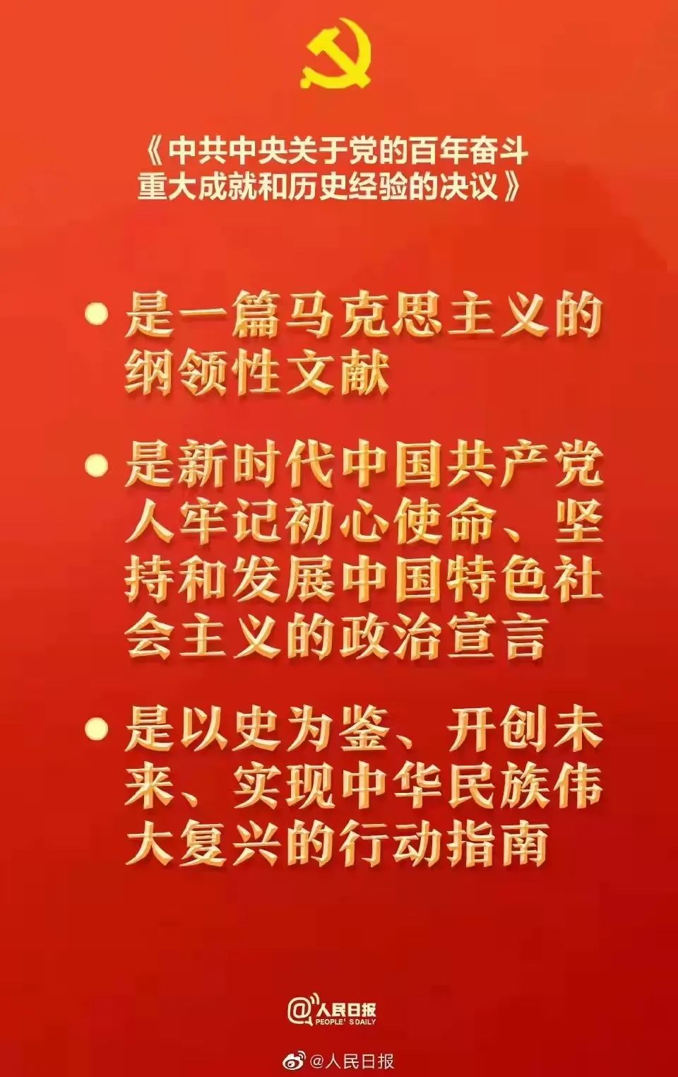 认真研读学习十九届六中全会的公告,并观看了新闻直播后,我们对党的发展历史感触颇深。总结才能更好的传承。这百年来,党领导人民进行了一次次的伟大奋斗,从落后贫穷、任外邦欺凌、面临生存危机的弱国,成长成一支先进富强、被世界各国尊重、经济政治军事都强大的强国,实现了艰难的蜕变和如今的辉煌,被网民们亲切称为“史上最牛创业团队”。这场历程难得珍贵,我们不能不挖掘、总结和传承党为我们积累了宝贵的历史经验。总结才能更好的出发。十九届六中全会的召开,是对党的百年奋斗重大成就和历史经验的圆满总结,让我们认识了过去;是对当前面临的世界百年未有之大变局和新冠肺炎疫情全球大流行交织影响,以及外部环境更趋复杂严峻情势下的客观总结,让我们认清了现在;是对今后可能遇到的发展和安全问题的未雨绸缪,让我们知道如何筹划未来。新的时期,我们要认识到任务仍然繁重艰巨,但是,只要做好增强“四个意识”,坚定“四个自信”,目标一致、齐心协力,我们就能攻坚克难、化解危机、抓住机遇,逐步实现中国梦,在新的时代劈波斩浪、坚定向前!