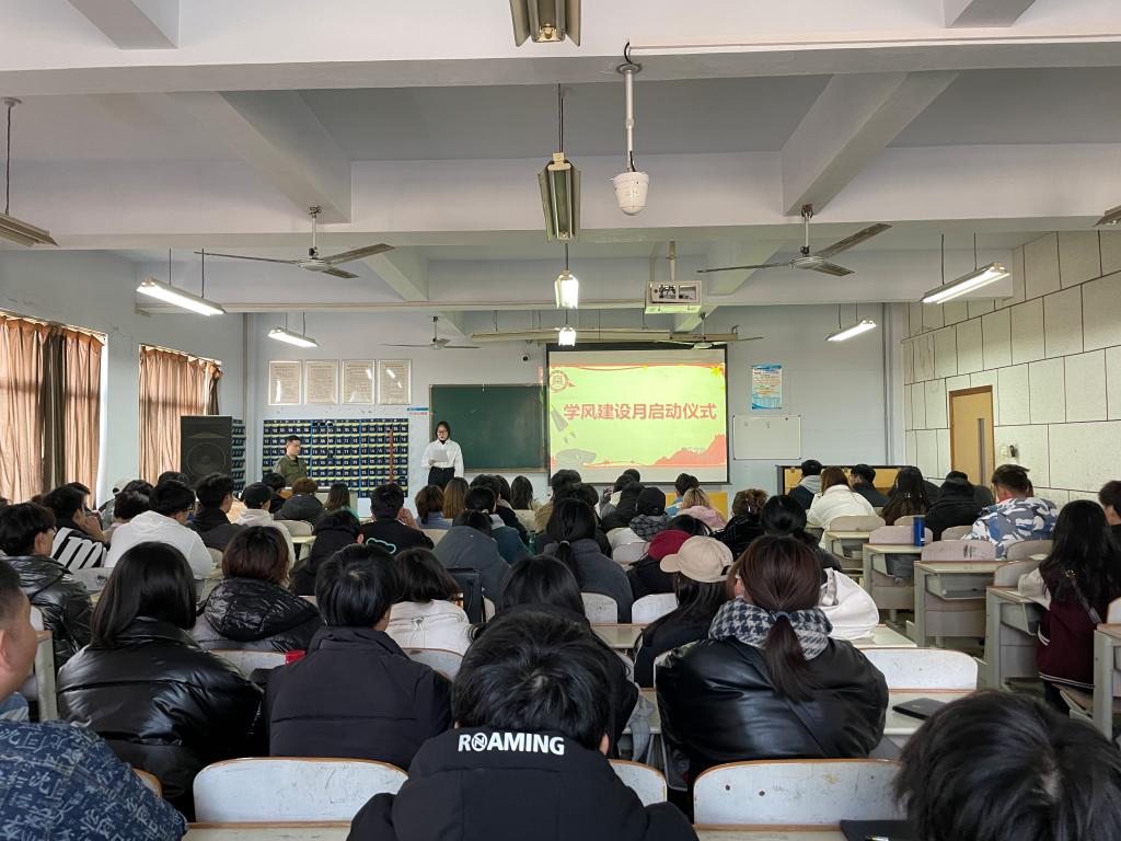 出席本次活动的有党委副书记米彦、团总支书记陈璨、21级辅导员禹亚辉。活动开始,先由主持人向大家介绍了本次活动的背景,然后由各级学生代表上台发言,代表依次讲解了自己对学风建设的理解,并承诺将会起好的带头作用,不迟到不旷课,诚信应考,拒绝舞弊。随后,进行学生代表上台签承诺书的活动。仪式最后,由党委副书记米彦对此次活动进行总结:她提出要多读书,读好书的倡议,学习不能仅局限于在学风建设月,更在日常,我们要树立终身学习的观念。